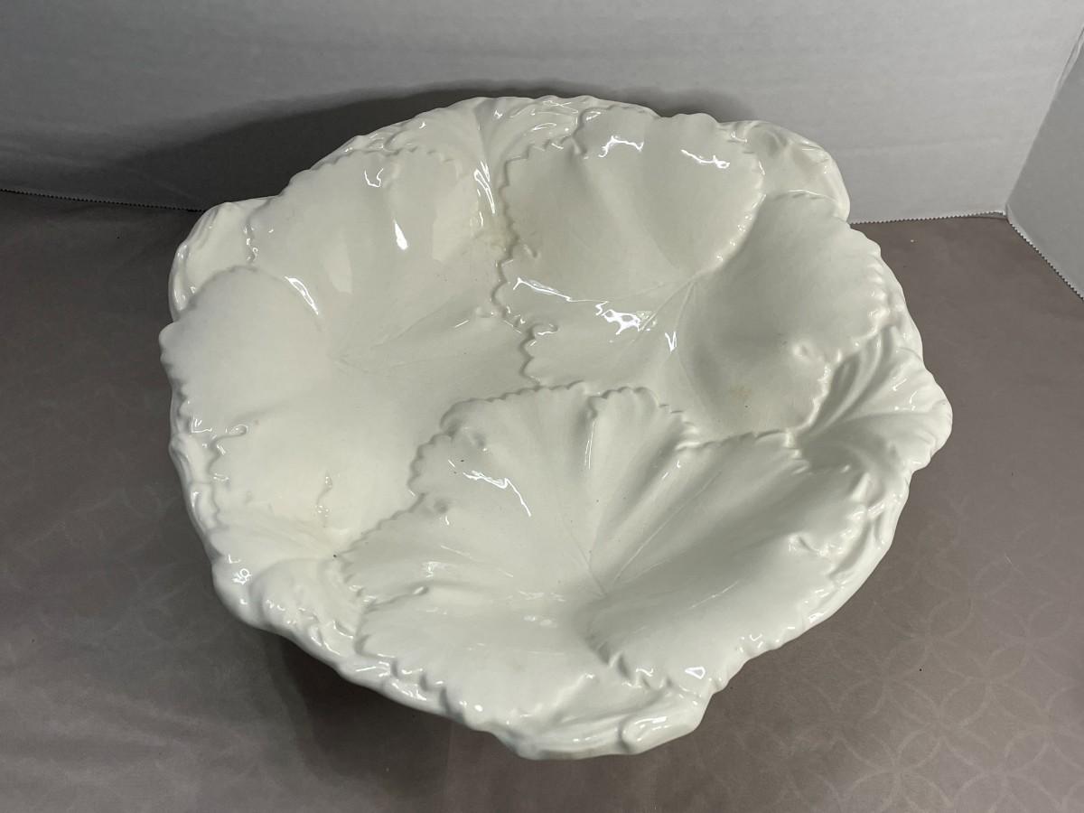 This bowl is just over 10 inches in diameter and I didn't see any cracks or chips. There is crazing on the underside and one spot of discoloration due to the crazing, but it is on the underside and wouldn't normally be seen.
