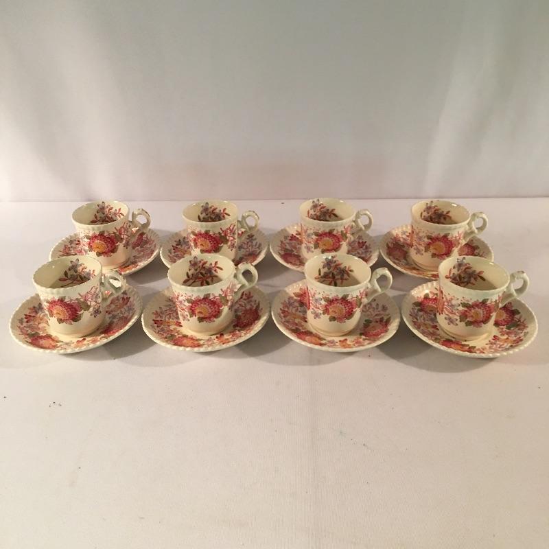16 pc Copeland Spode tea cups and saucers in Spode’s Aster pattern. A stunning set of tea cups is sure to please your eyes. A few have crazing on bottom, see pictures.