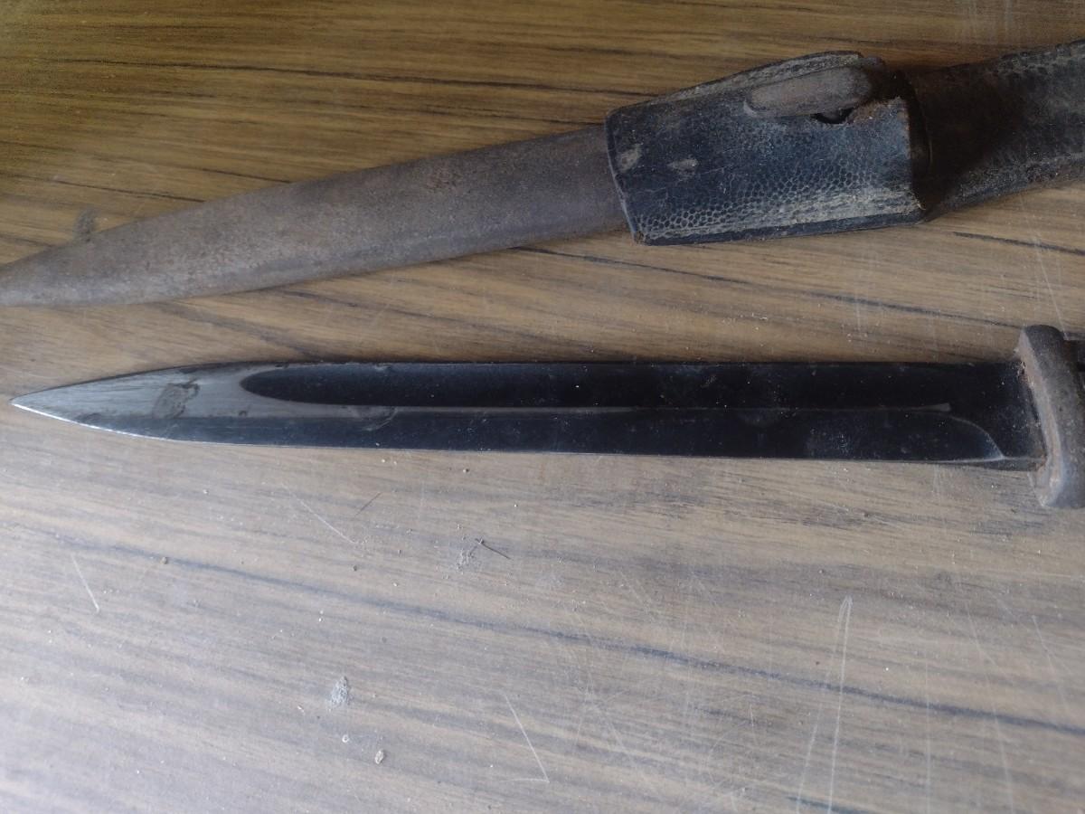 Coppel Gmbh German Bayonet with Sheath. Buyer will need to confirm the description since the markings are worn.