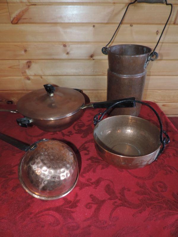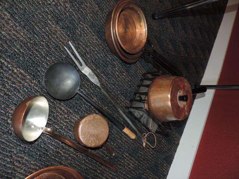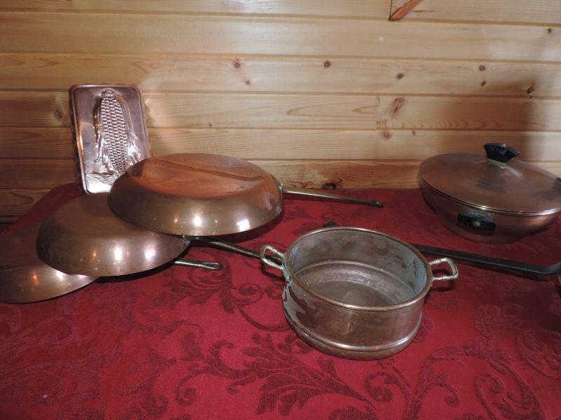 LOT 266  COPPER POTS AND PANS