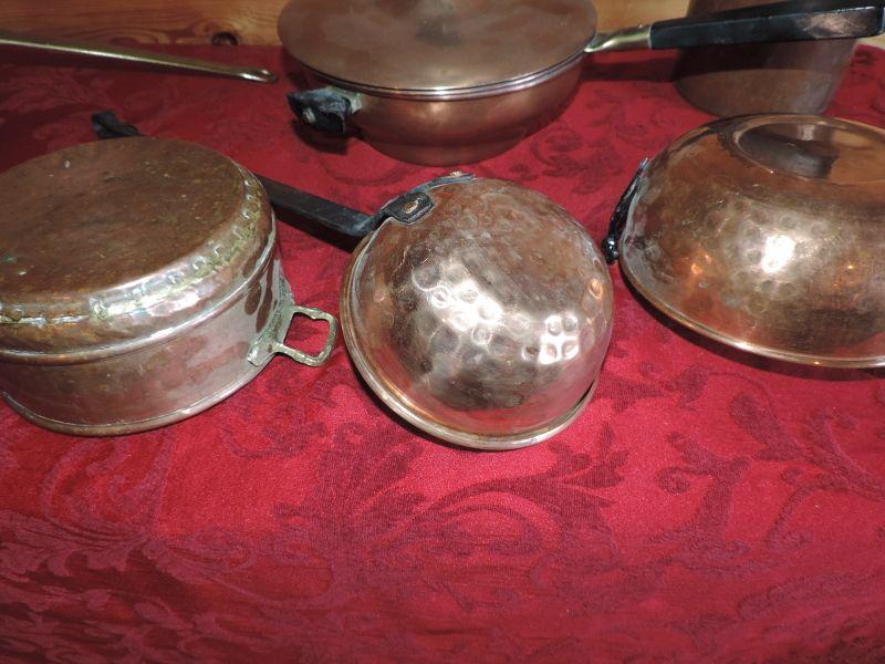 LOT 266 COPPER POTS AND PANS