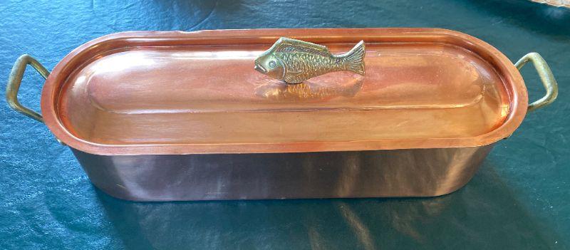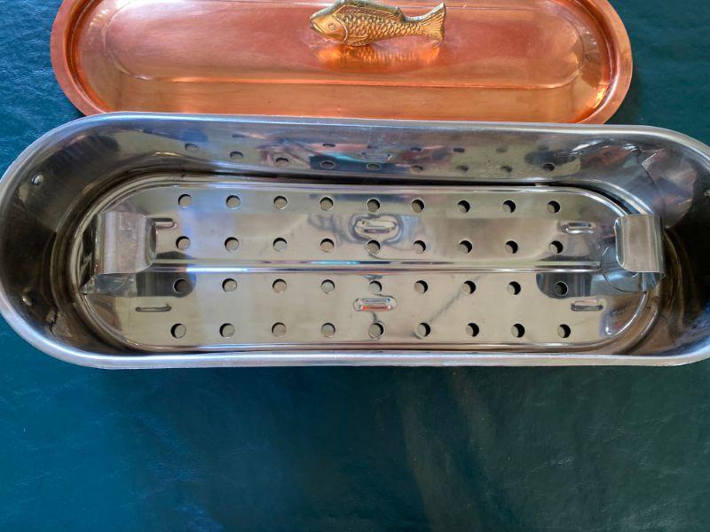 Copper and Brass Fish Poacher measuring 20" handle to handle