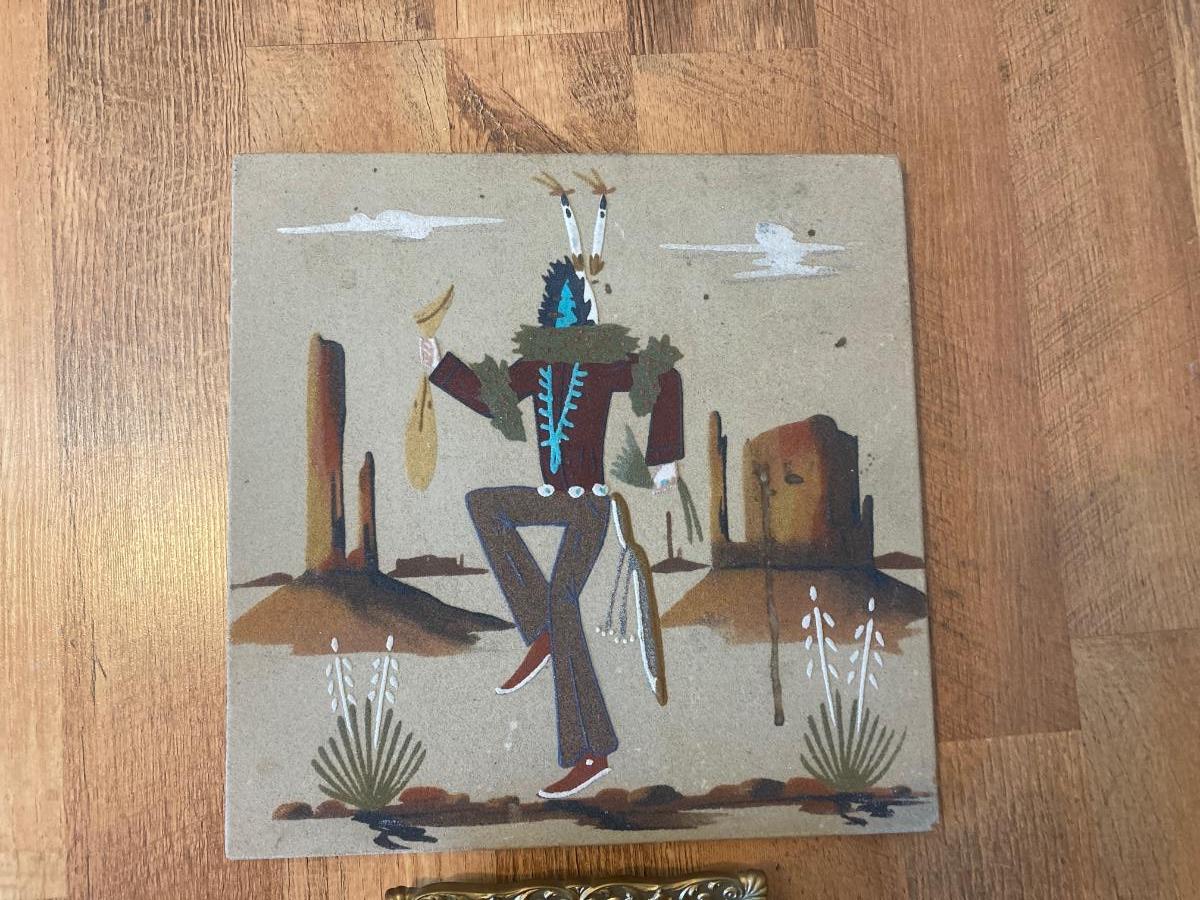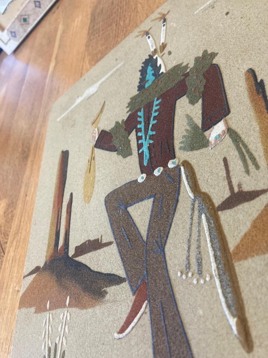 13”x13” SAND ART PAINTING WITH DESCRIPTION ON THE BACK MADE BY WILSON PRICE A NAVAJO INDIAN