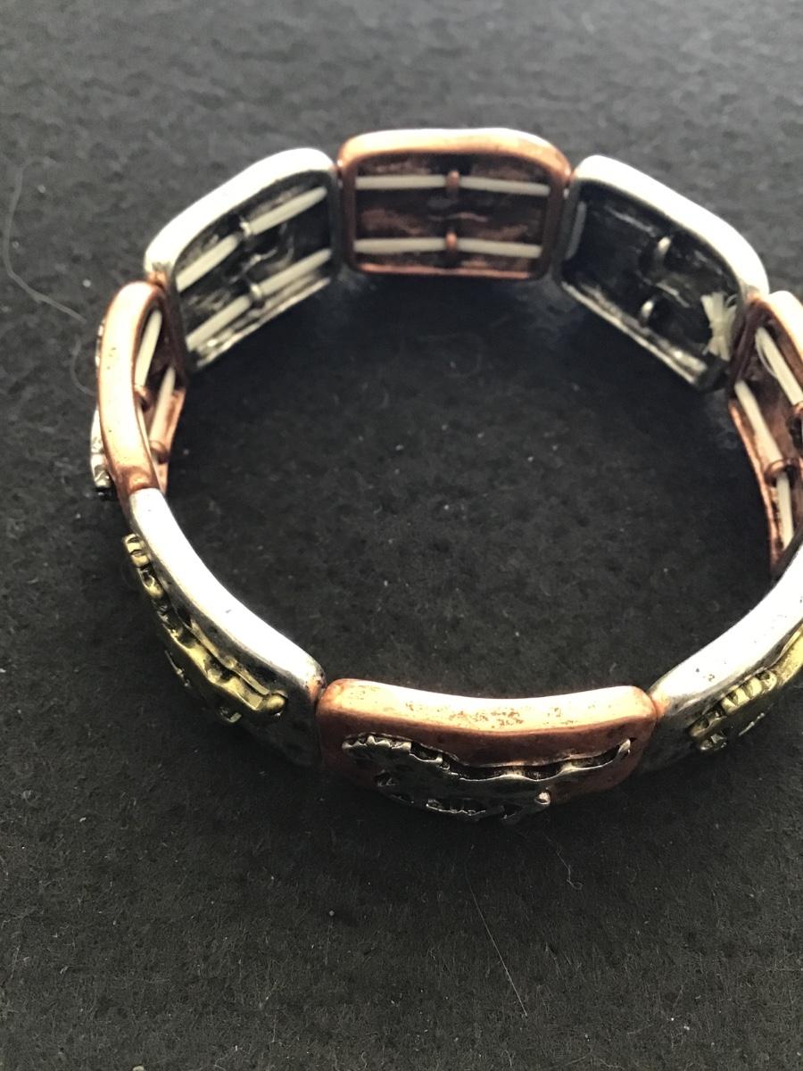 Copper and silver tone stretch bracelet