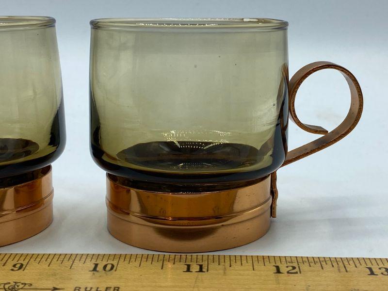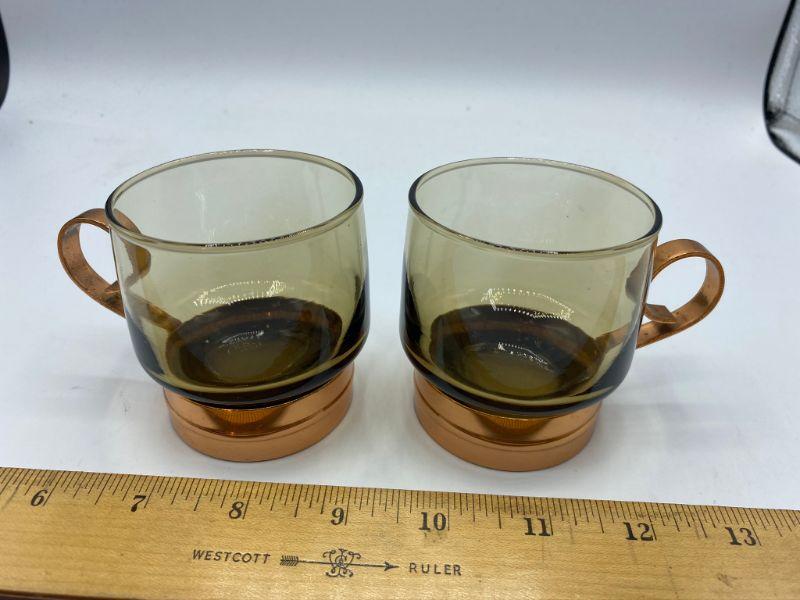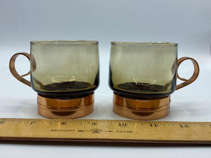 Pair of Demitasse Espresso size cups. Smoke colored glass with copper base and handle. Good Condition.