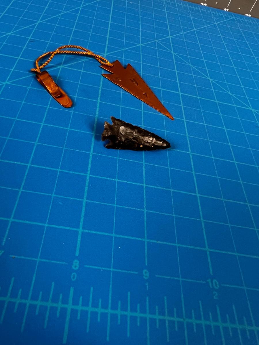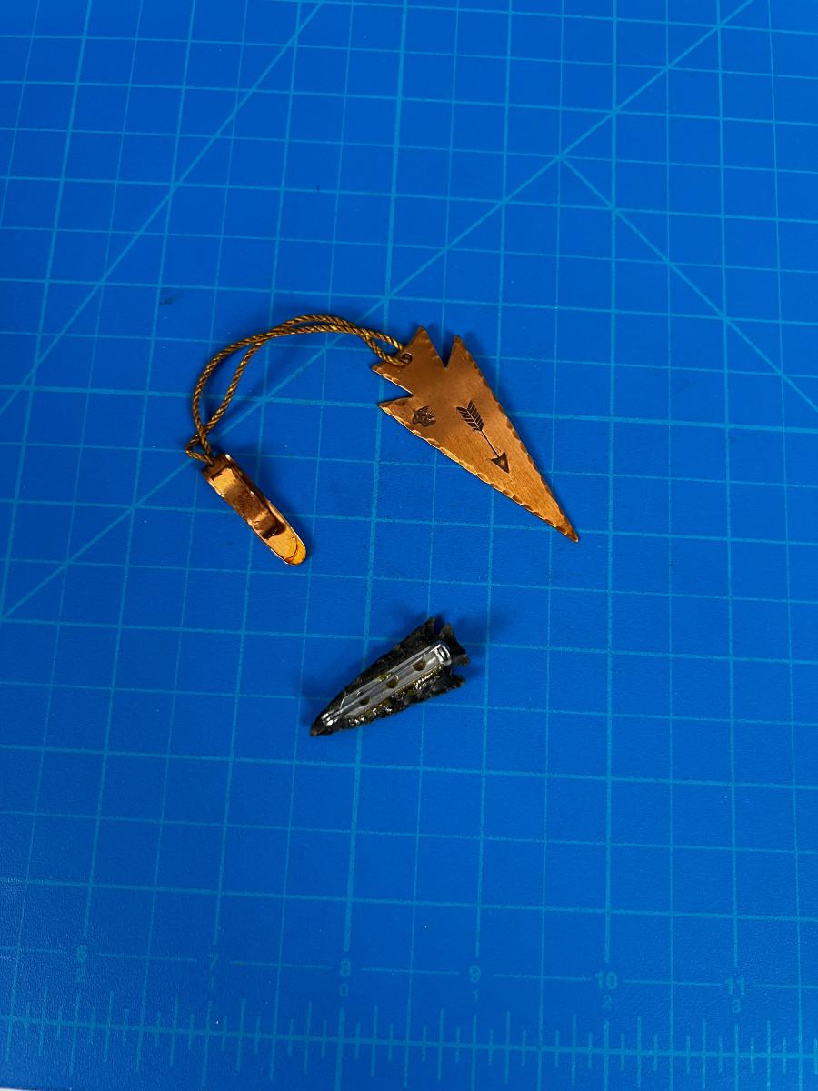 Copper Arrowhead Book Mark and Genuine Flint Obsidian Arrowhead Pin.