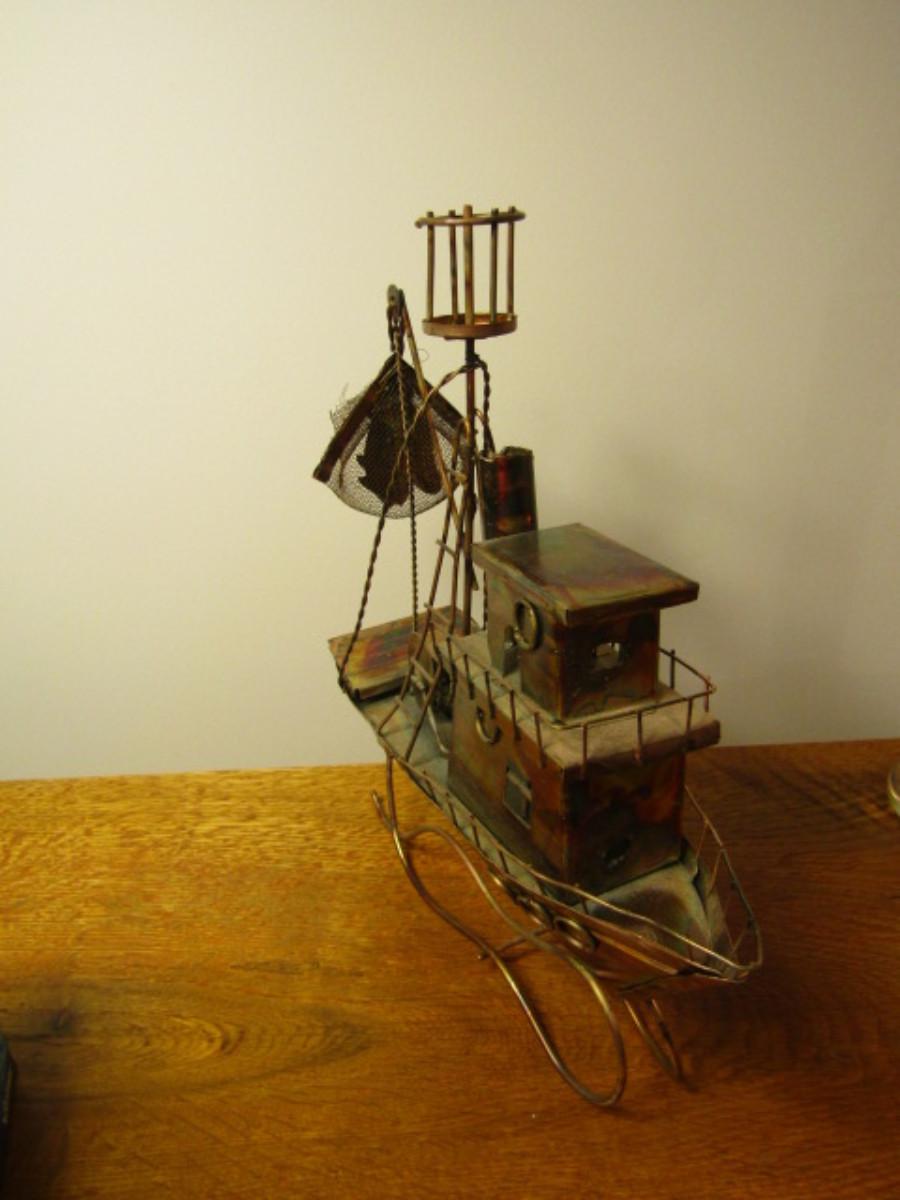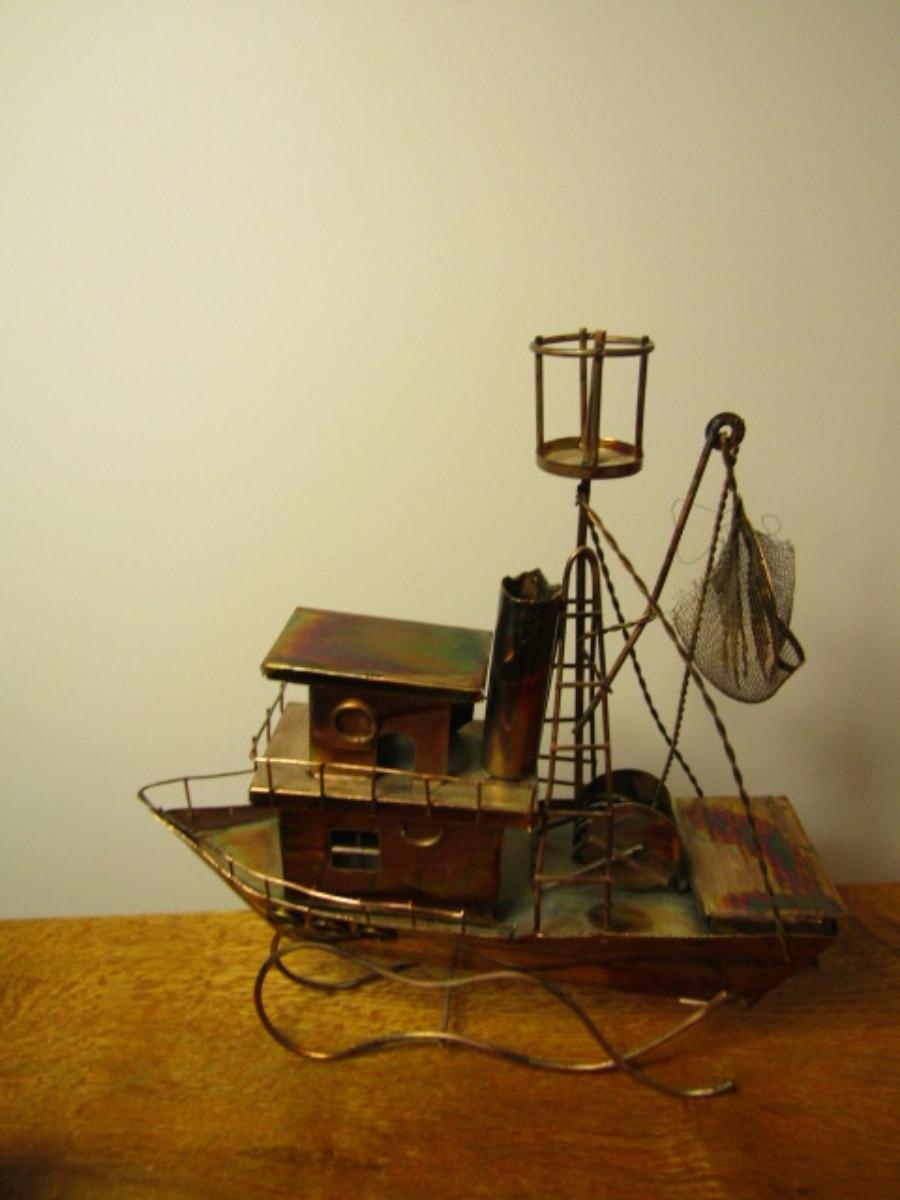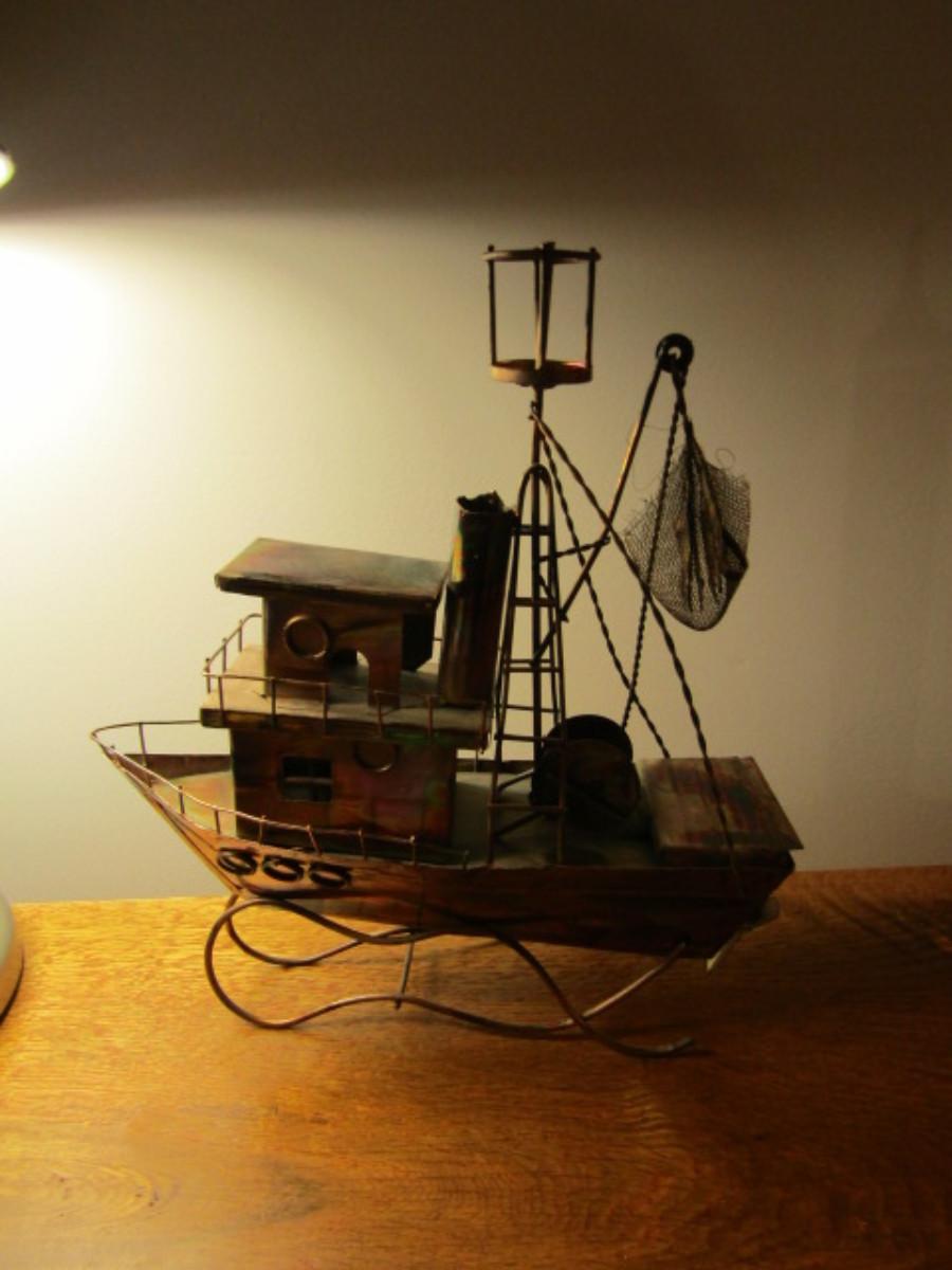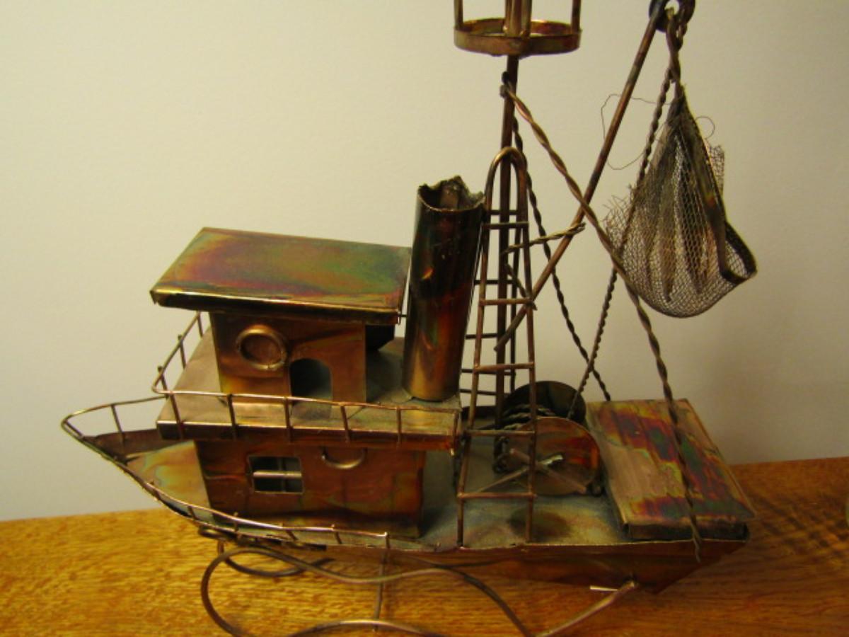 Copper Boat Design Music Box- Plays 'Beyond the Sea'- Approx 12 1/2" Tall