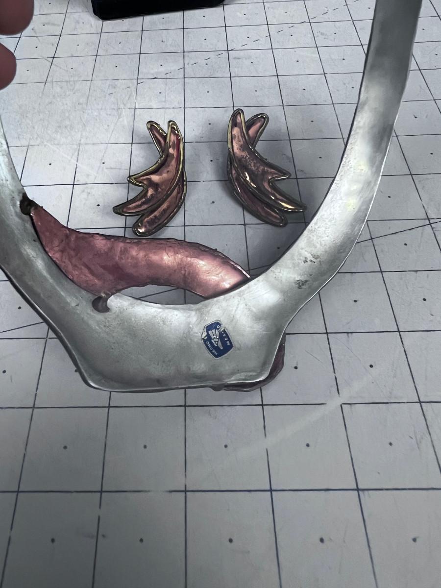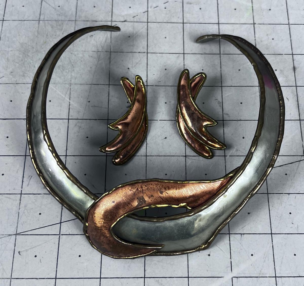 Copper, Brass and Silver Collar Type Necklace (Throw Back the 80's) and Big Earrings