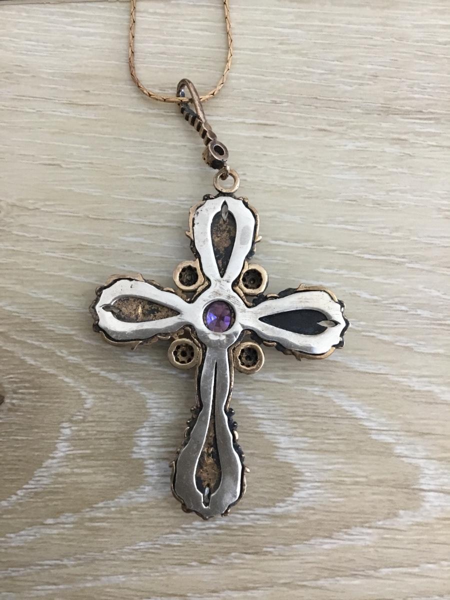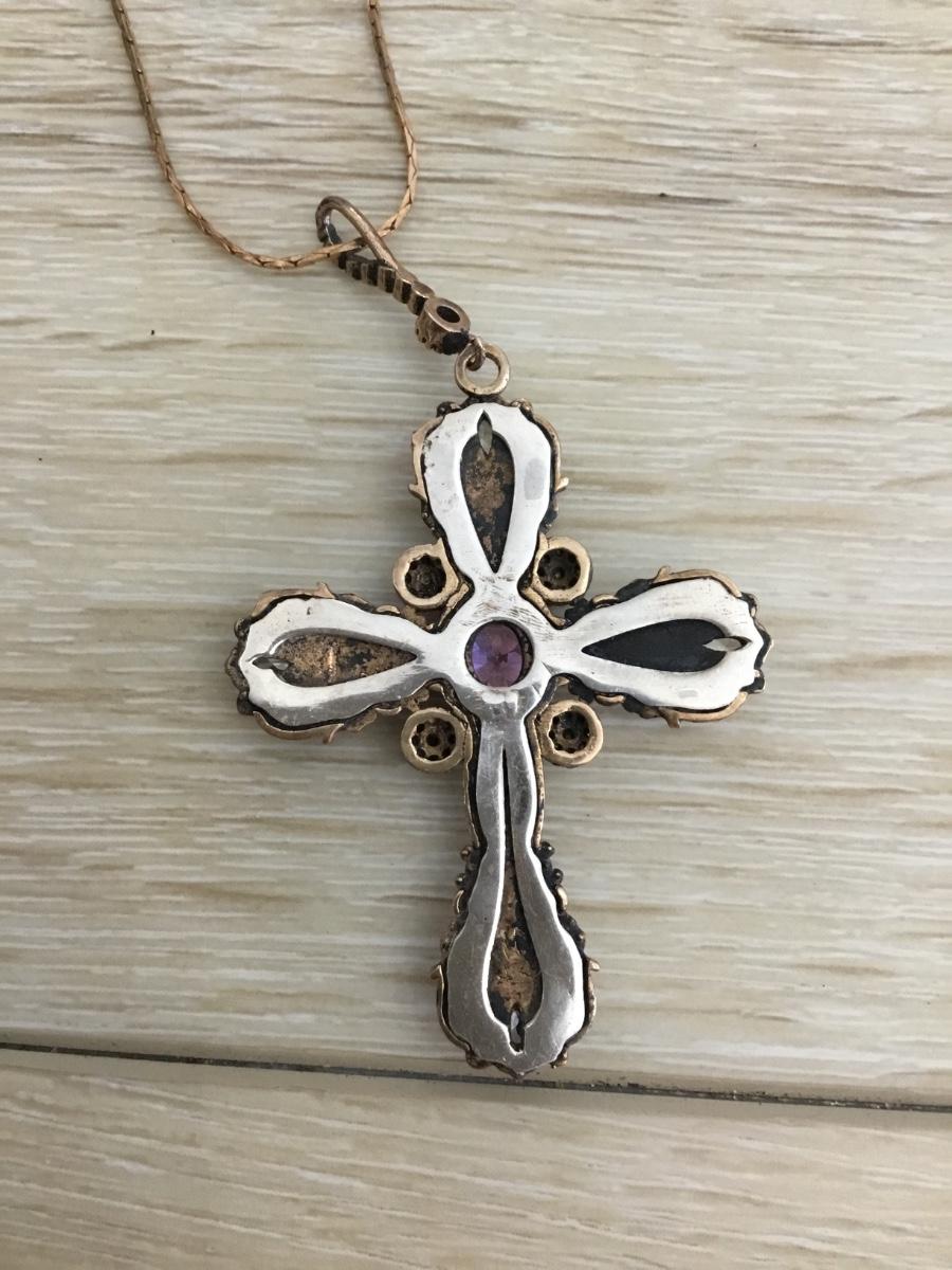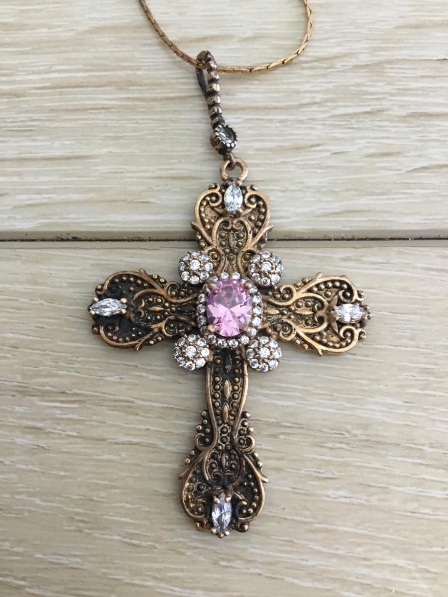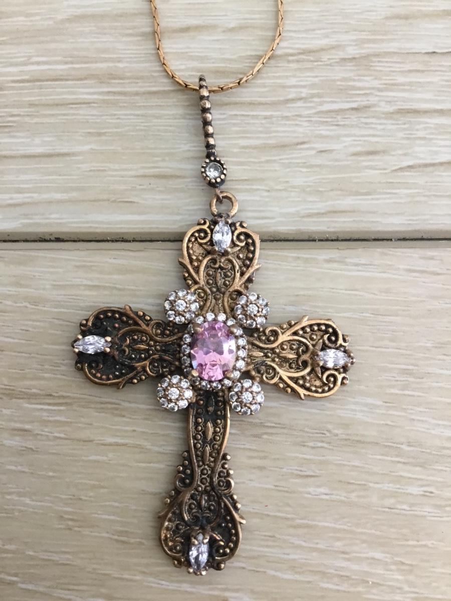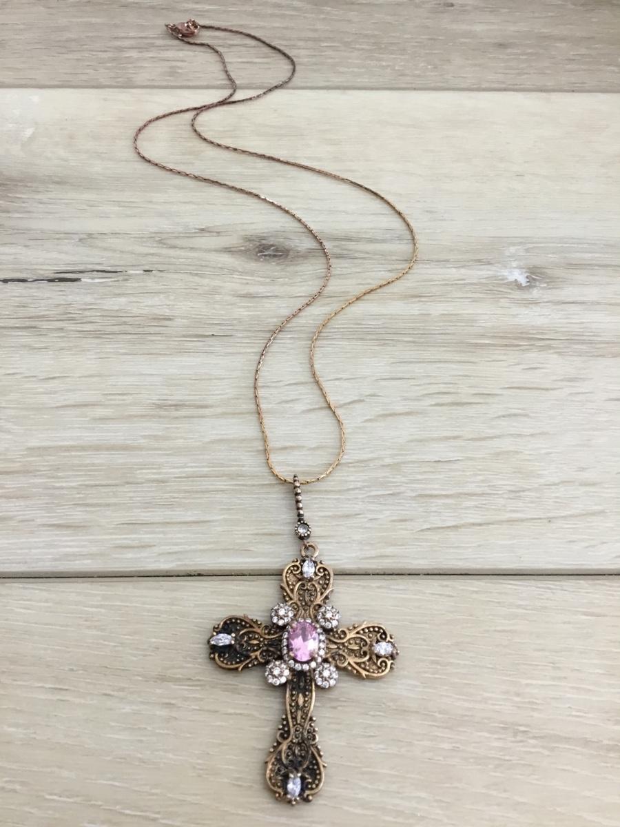 Copper bronze antique gold mix, cross pendant with chain necklace