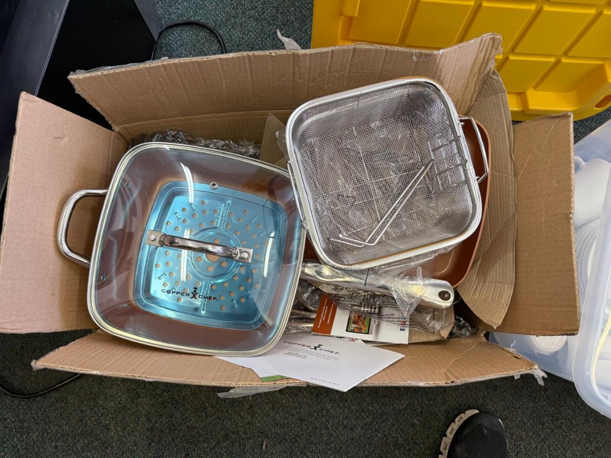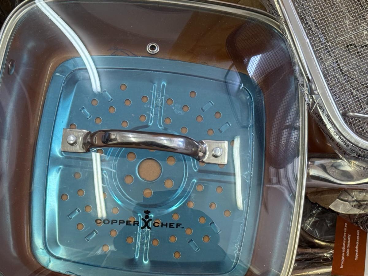 Copper Chef Pan Set 6.7qt. Casserole Pan Glass Lid Panini Press Baske