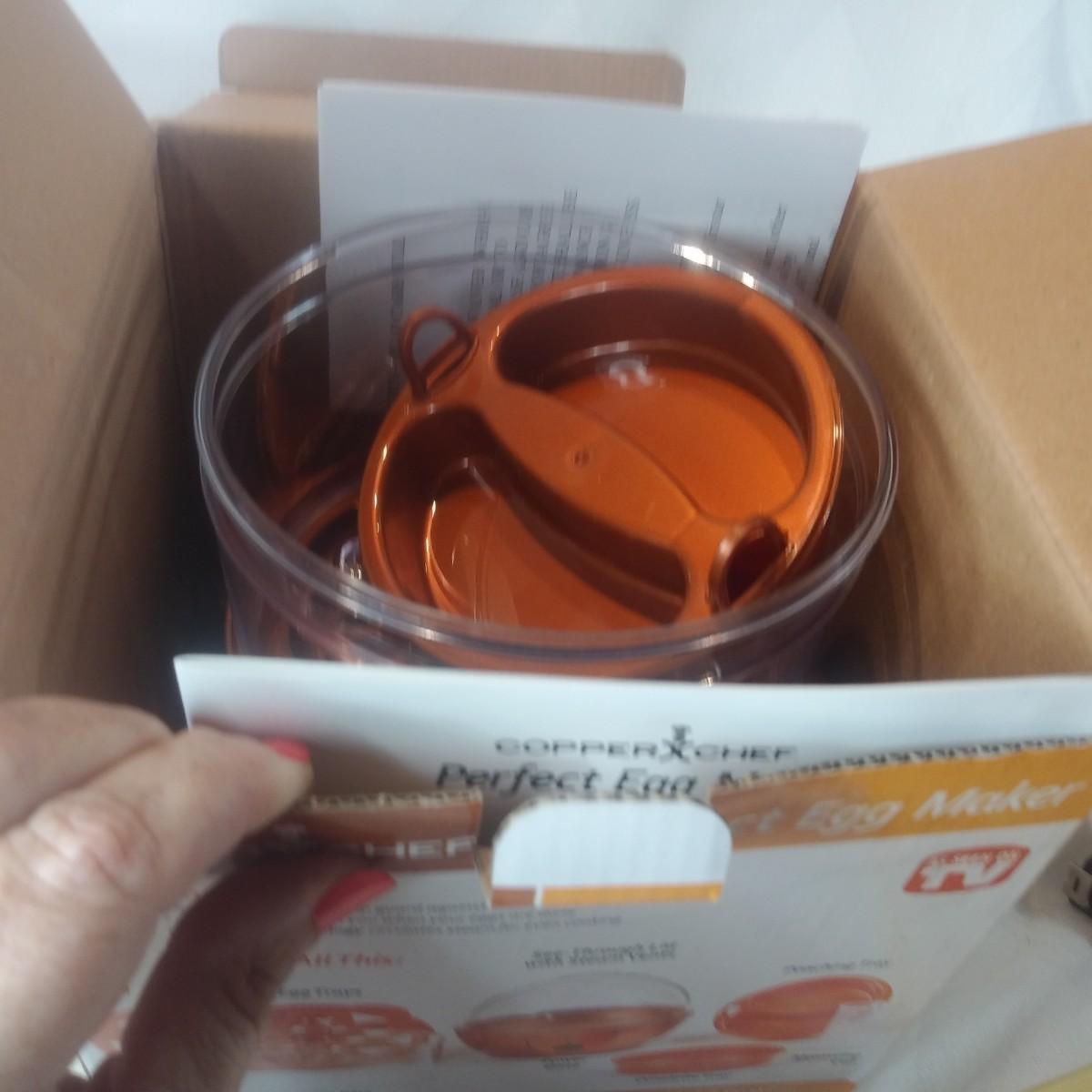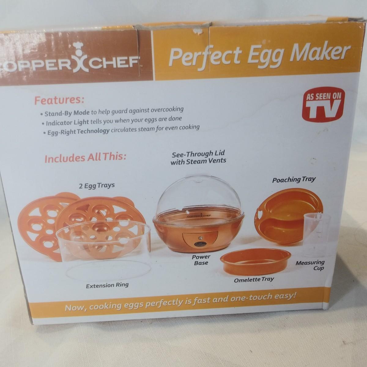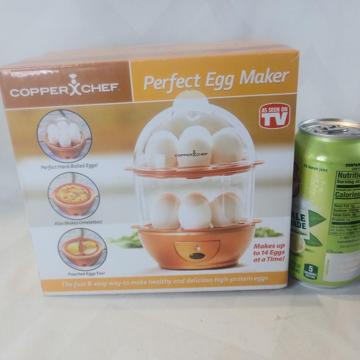 This auction lot is for a Copper Chef "Perfect Egg Machine". As seen on TV. This egg cooker appears to be new in its box and ready for your use.