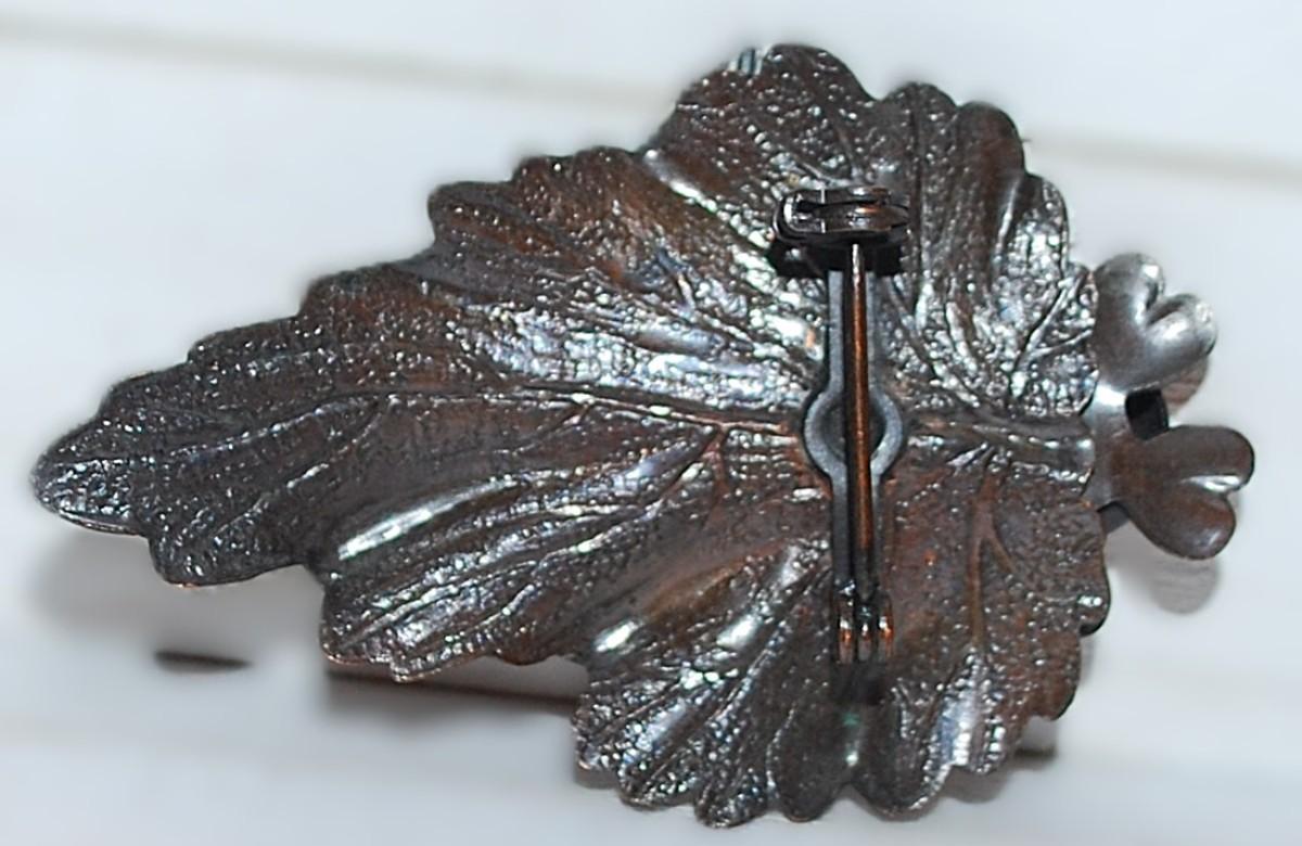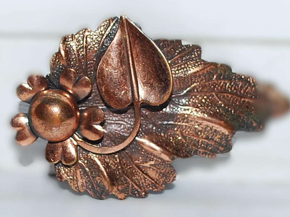 Copper Colored "Leaf & Flower" BROOCH (2" x 1¼") on a Copper Style Setting