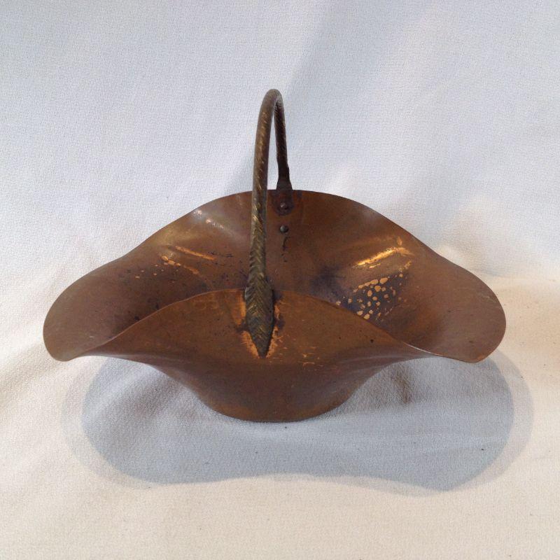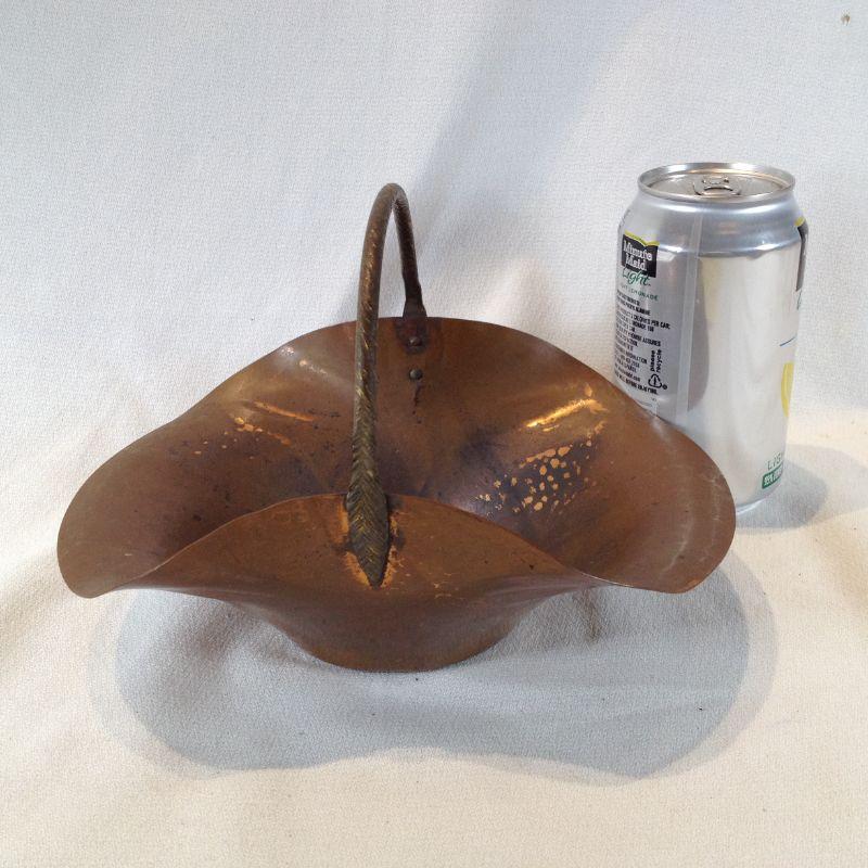 This lot is for a sweet Handcrafted Copper Basket. It is in very good shape and holds a nice weathered patina. It will polish up if you want but many folks like that aged look. Fill with mints or nuts. So nice.