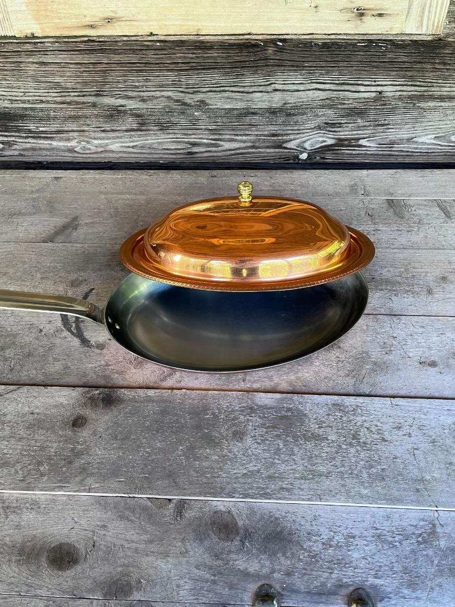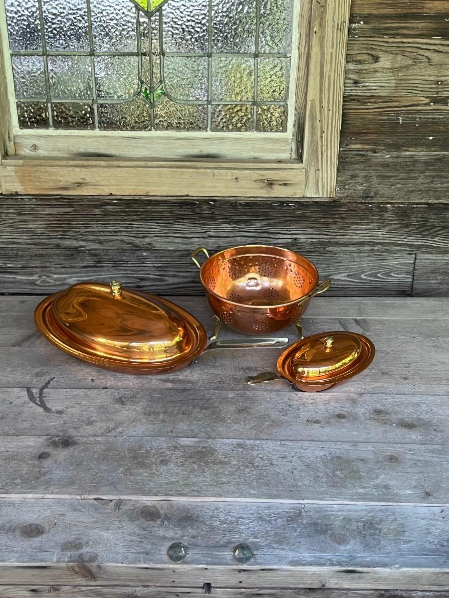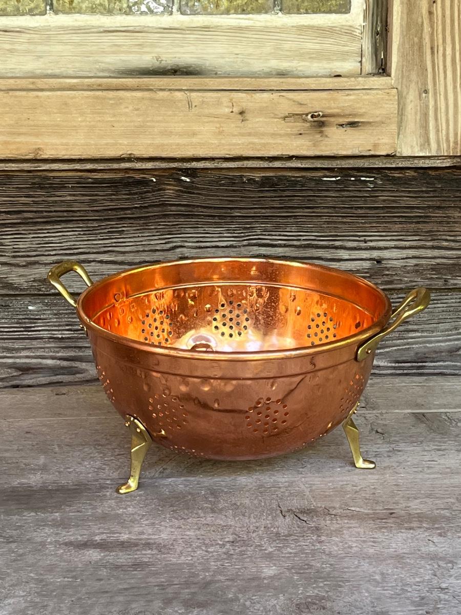 Colander = 5.5” H x 10” round ~ Big pan = 15.5” W x 10” D ~ Small pan = 9” W x 6” D