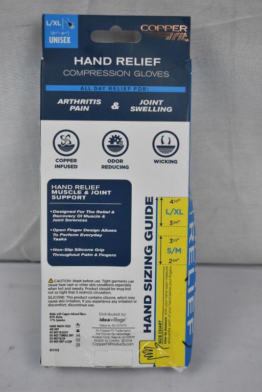 Copper Fit Hand Relief Compression Gloves, Large/Extra Large, $20 Retail - New