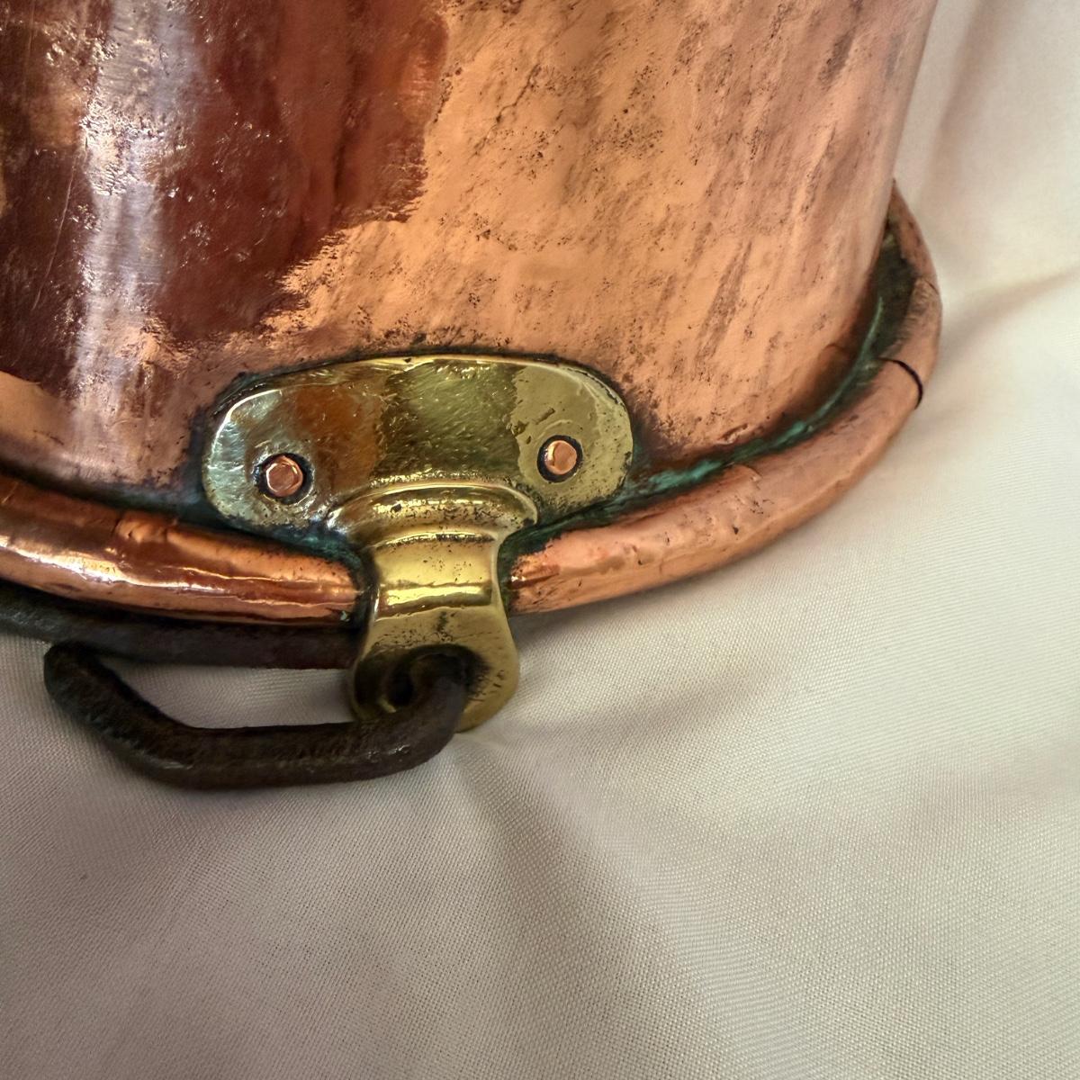 Lot includes a what appears to be a copper kettle with iron handle. Kettle measures 11”D x 7”H.