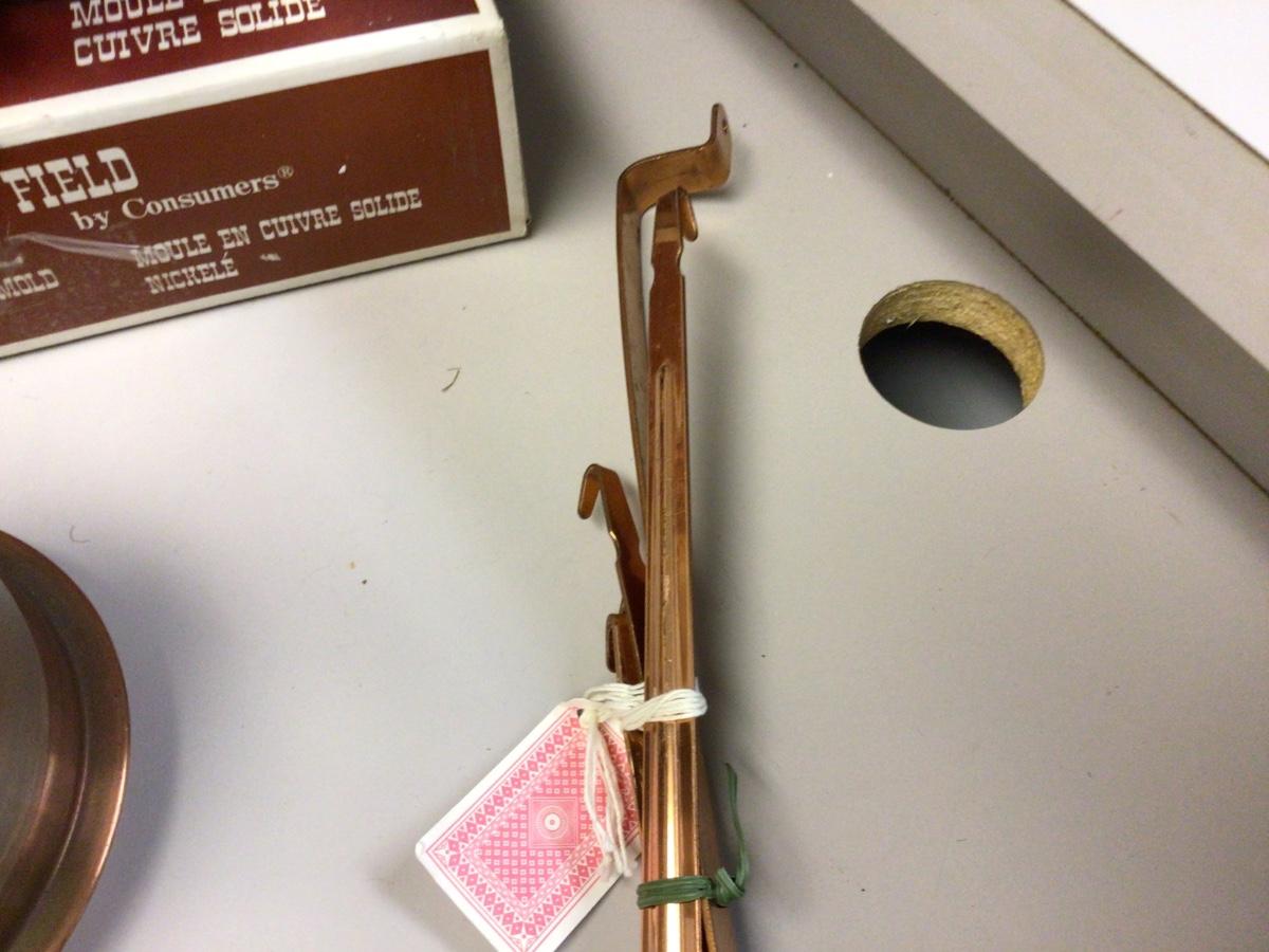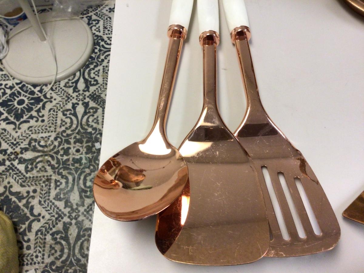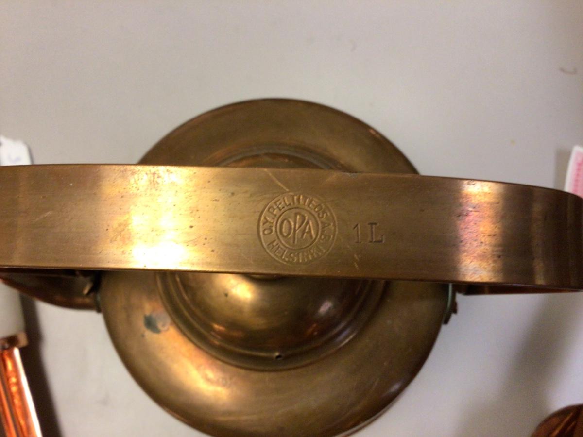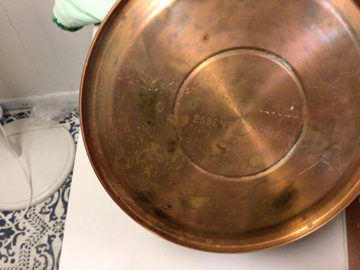 You get copper bottom tea pot, copper tea pot, copper fish mold in original box, two sets of copper intensiles. Very nice.