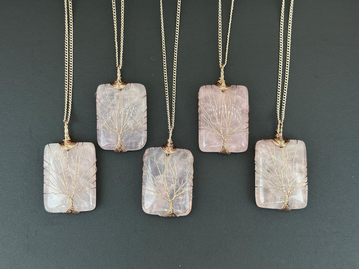 1. Copper Pink Quartz Tree Of Life Necklace Lot_x000D_