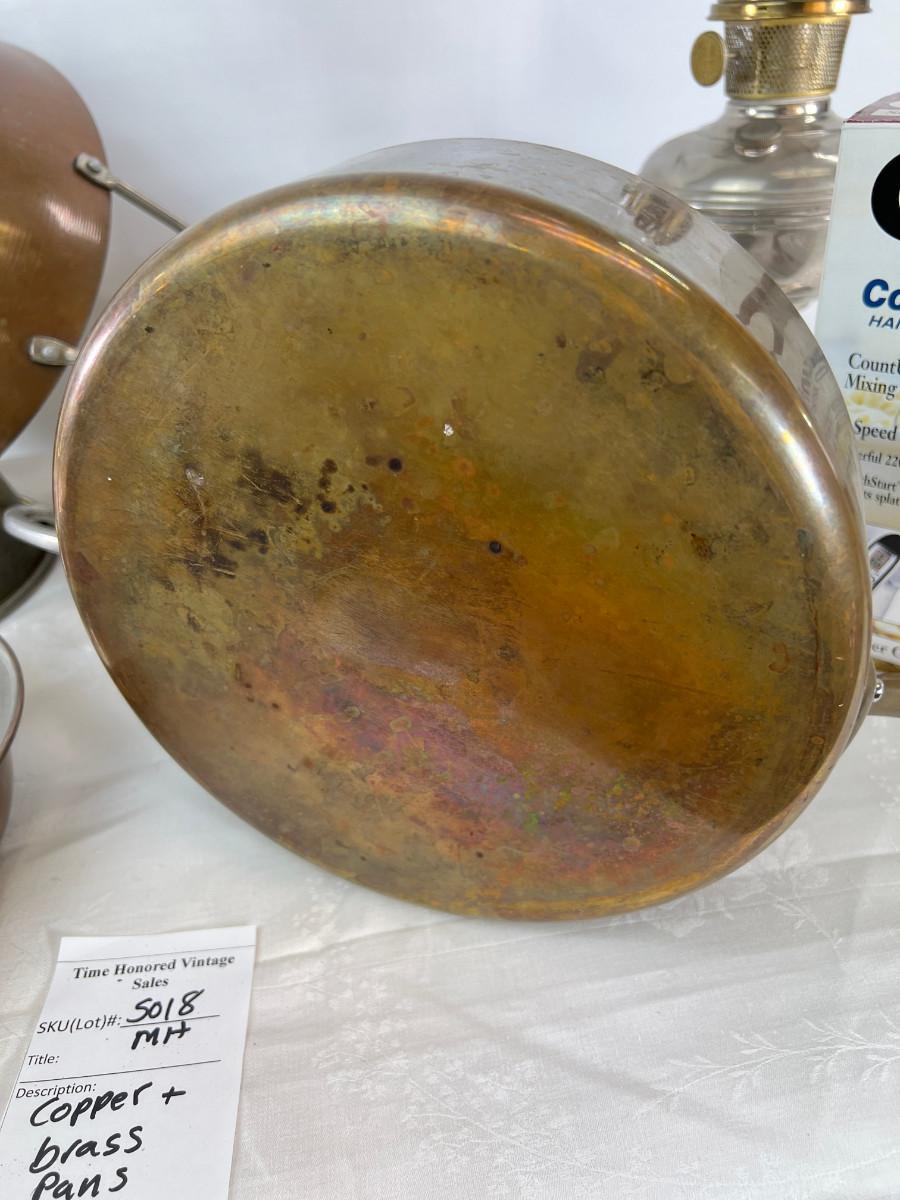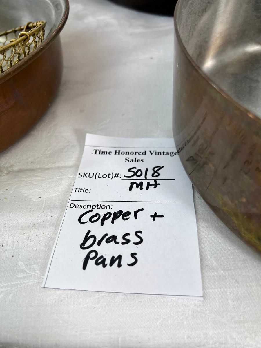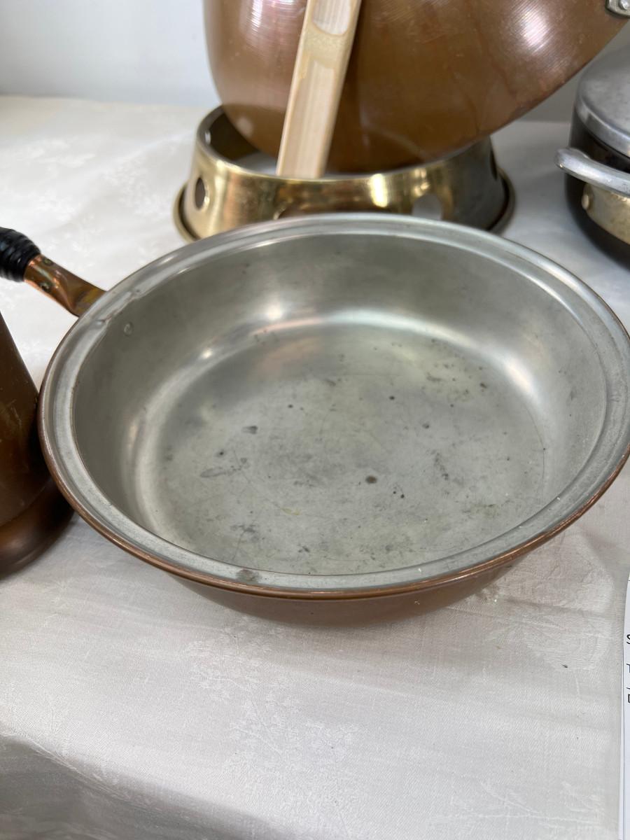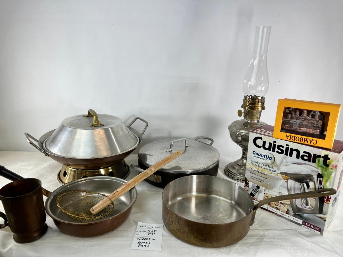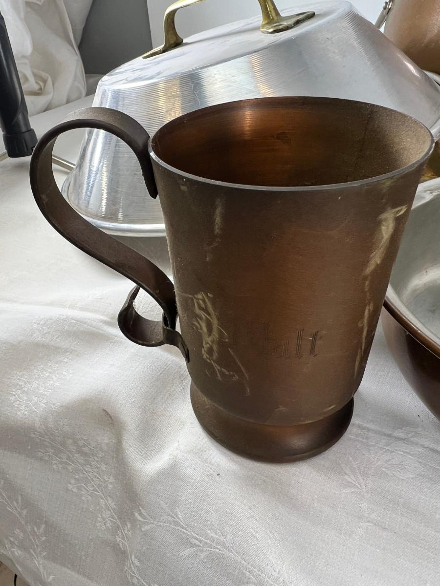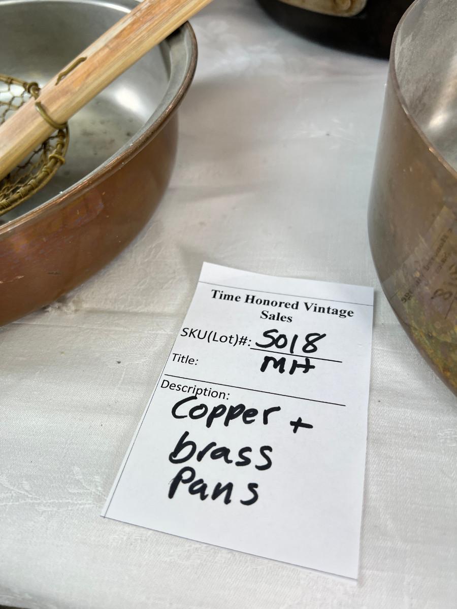 Wok with brass handle, high temp cooking brass strainer, oil lamp, copper cup with mongram