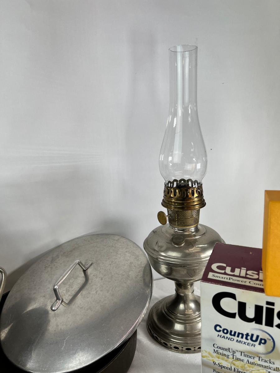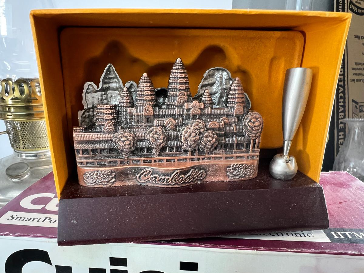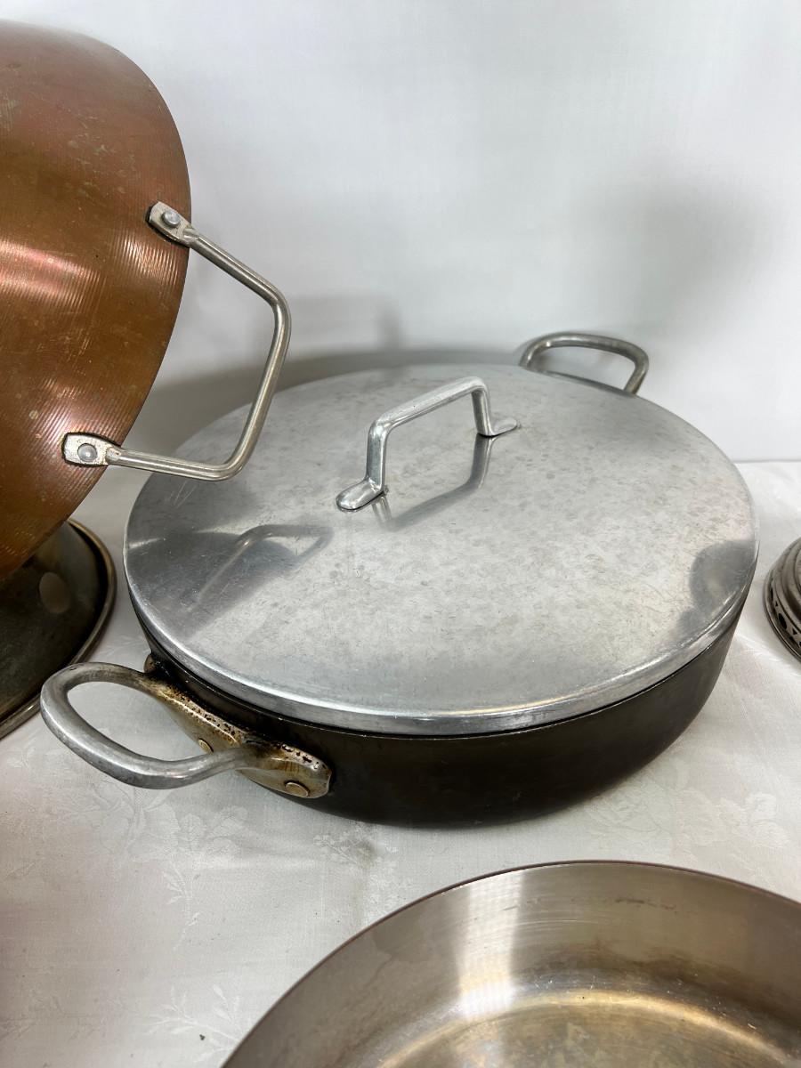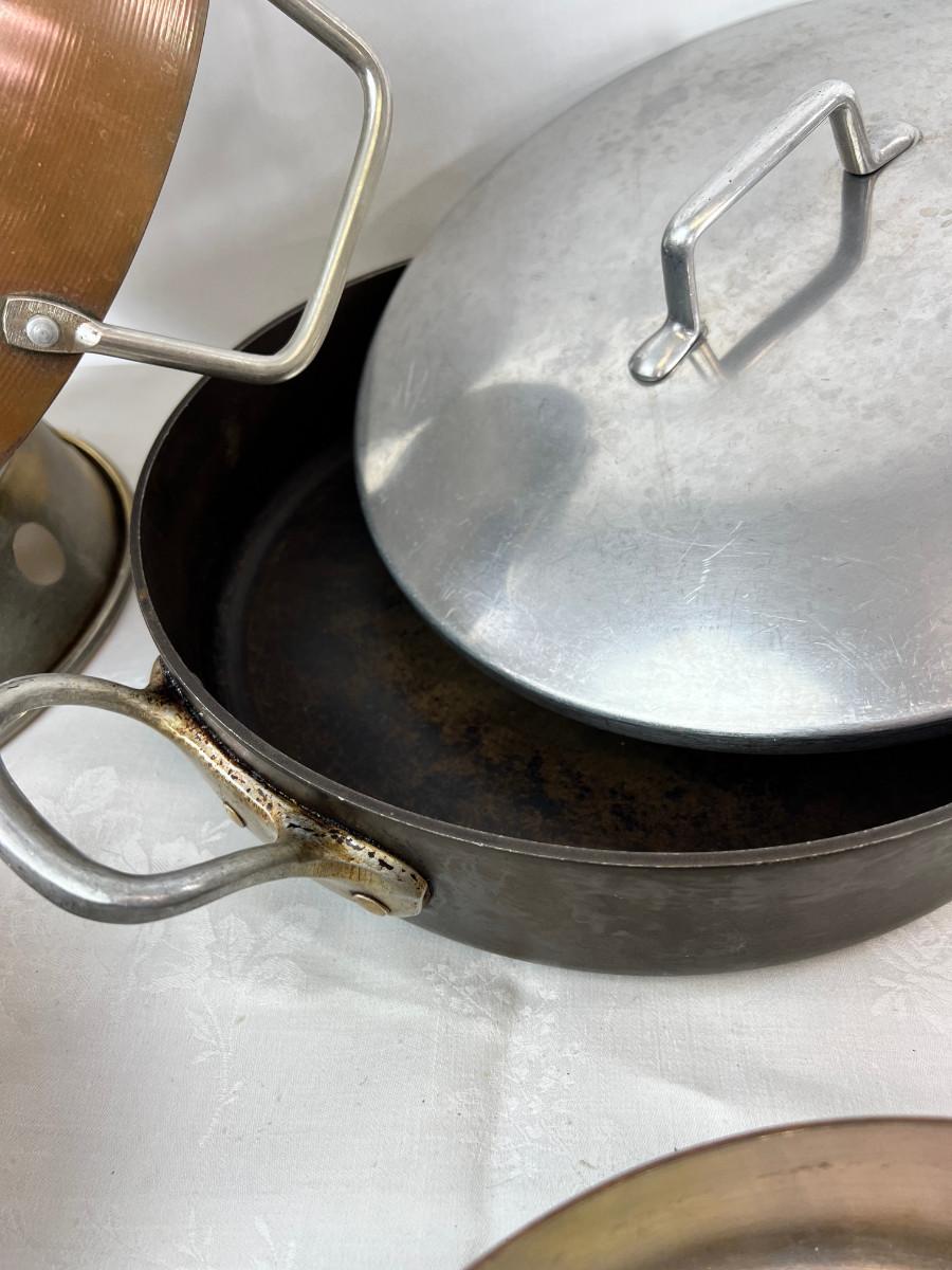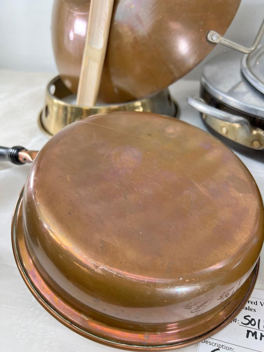Wok with brass handle, high temp cooking brass strainer, oil lamp, copper cup with mongram