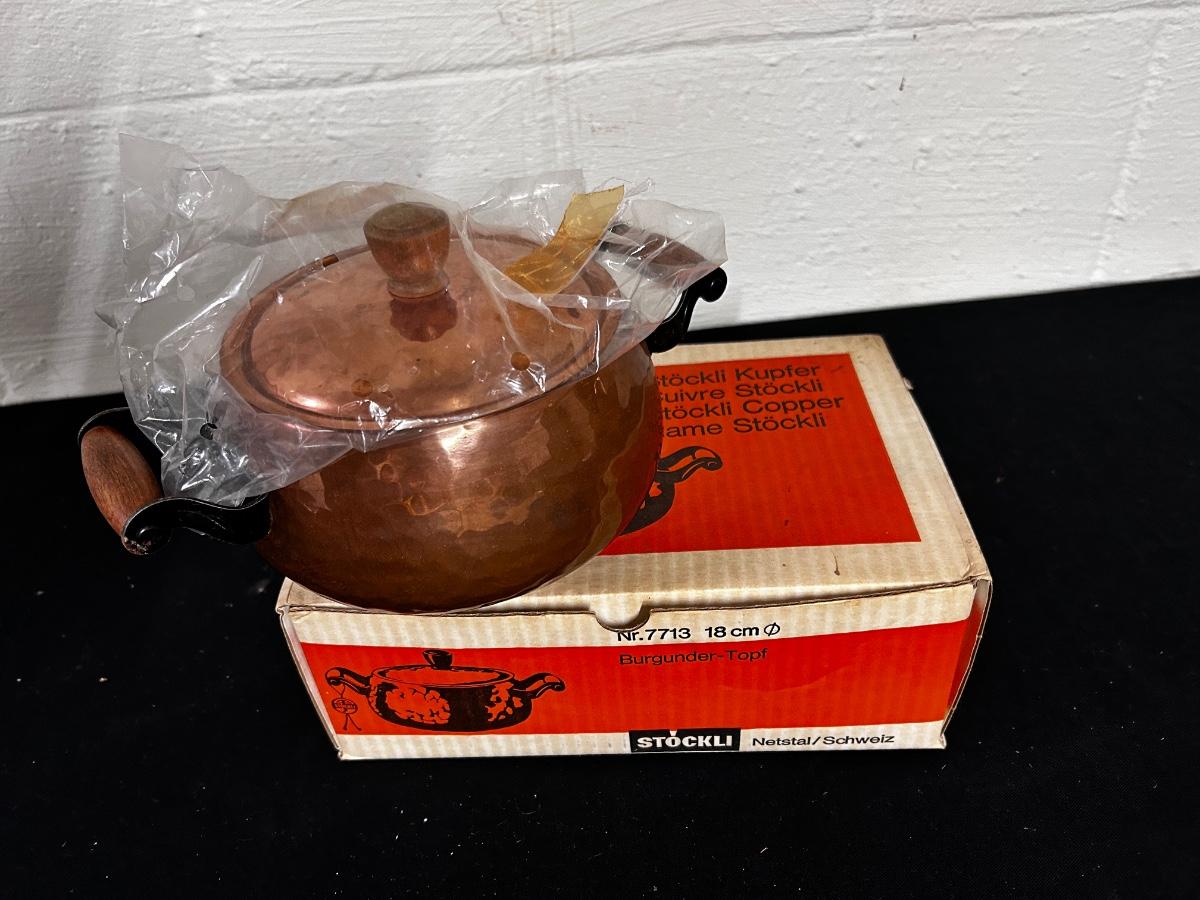 Stockli-Netsal 7" vintage copper pot - Swiss made. with original box