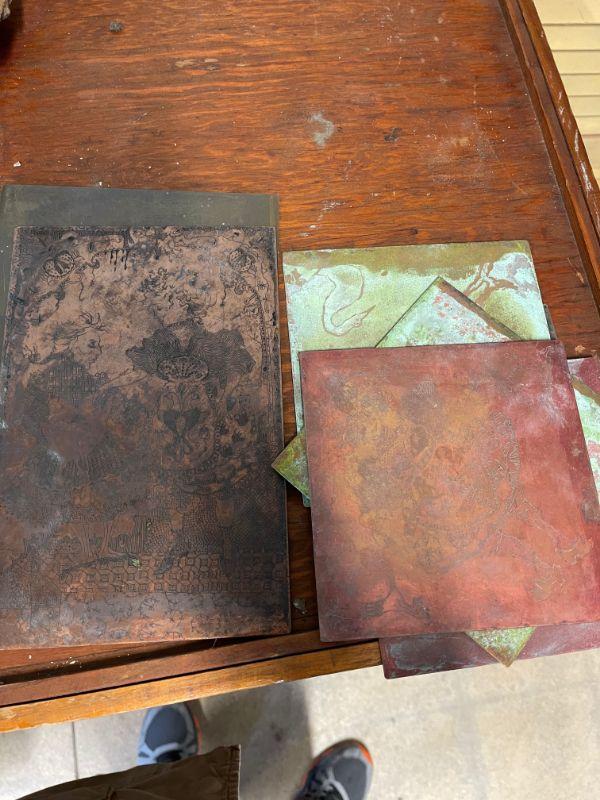 6 plates with 6 different scenes . Hard to see not cleaned up