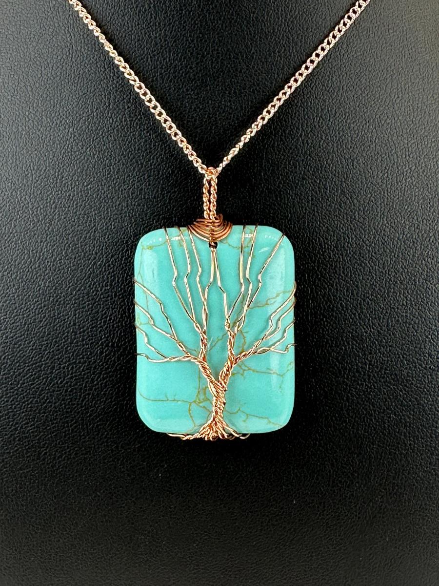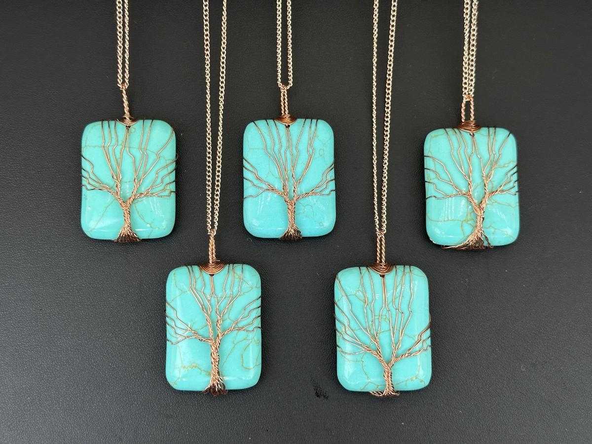 1. Copper Synthetic Turquoise Tree Of Life Necklace Lot