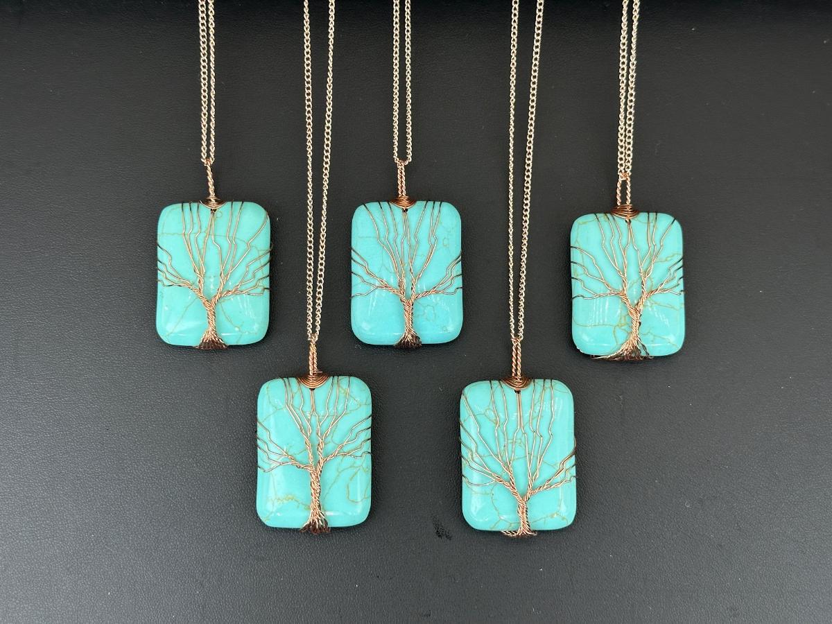 1. Copper Synthetic Turquoise Tree Of Life Necklace Lot