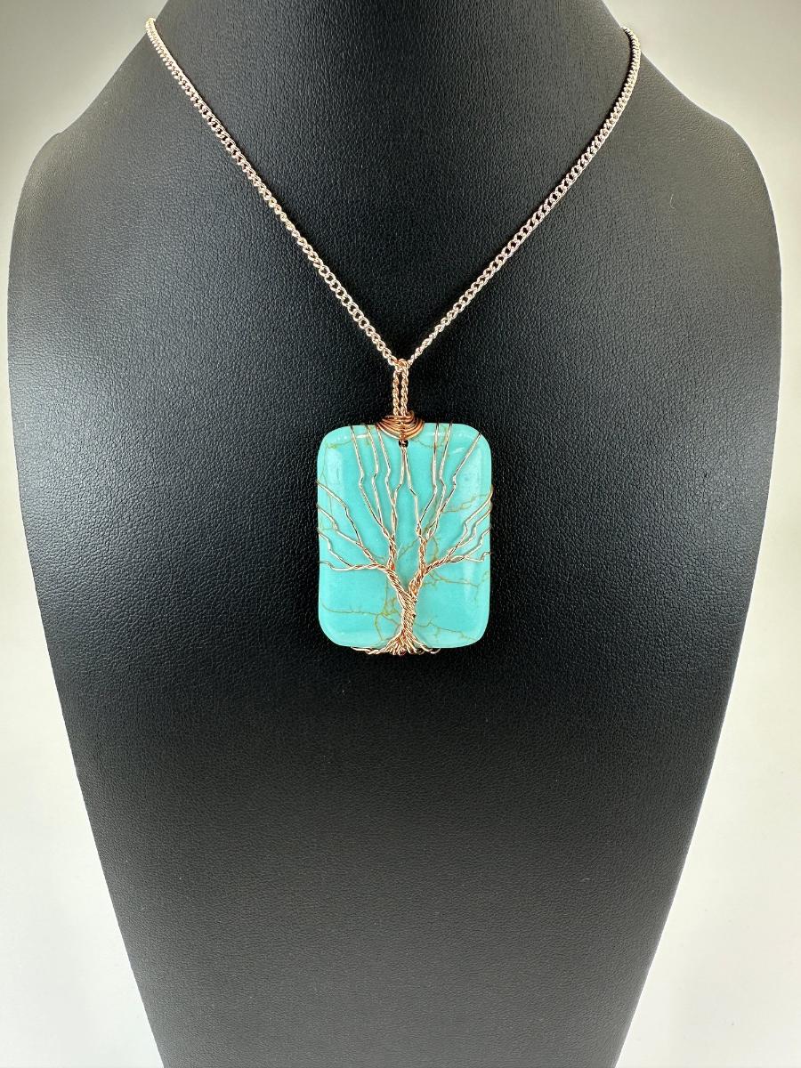 1. Copper Synthetic Turquoise Tree Of Life Necklace Lot