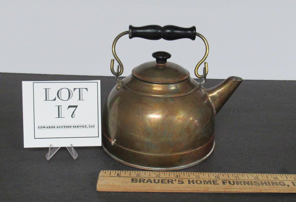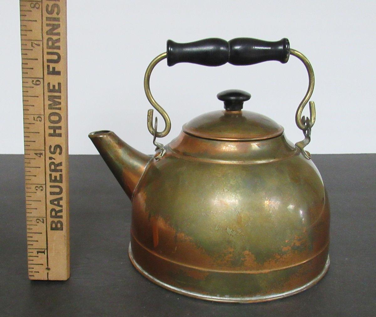 Copper Tea Kettle Wood Handle, Brass Hardware, Made in England Lots of Great Patina