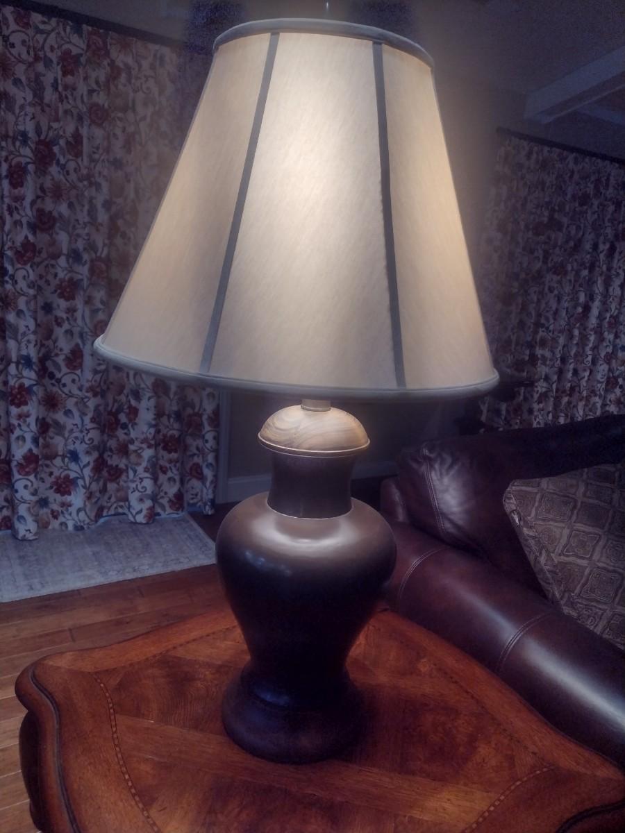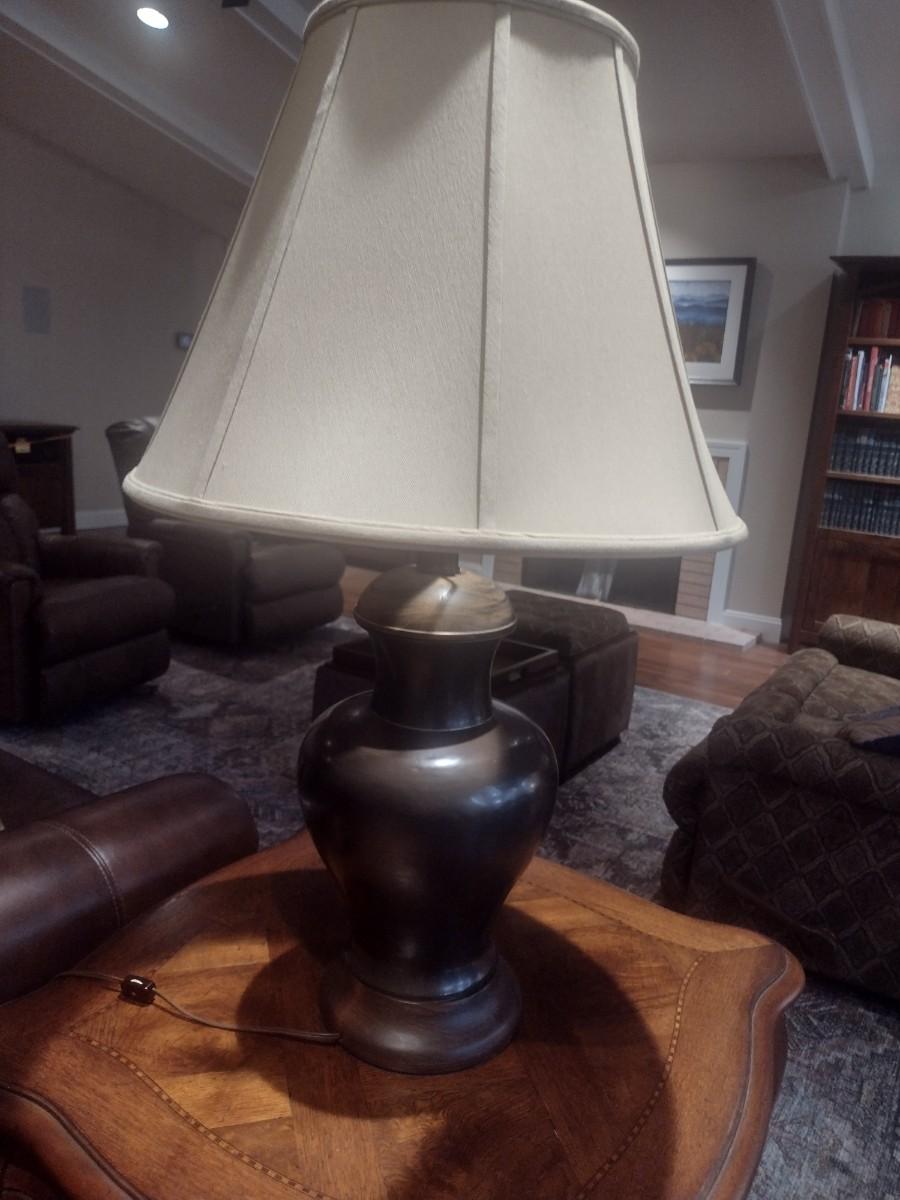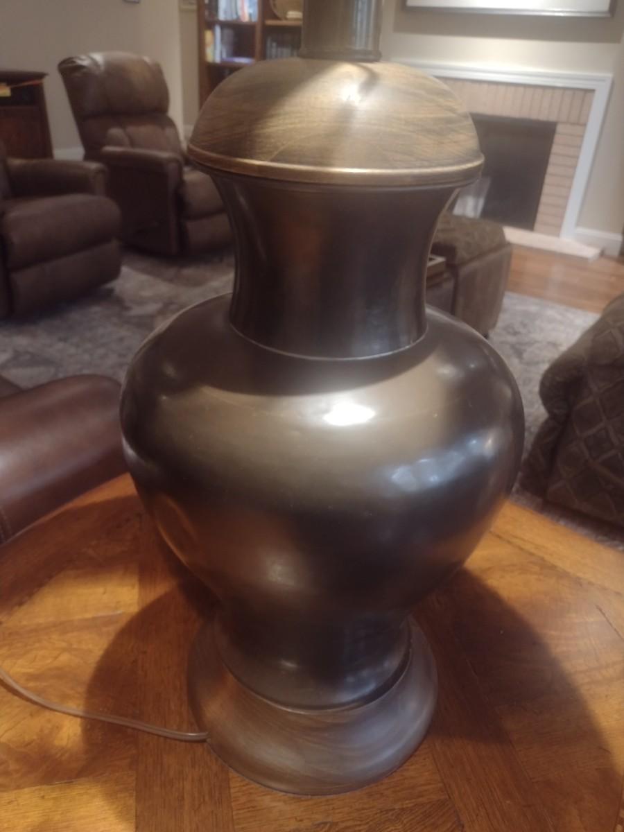 Copper Tone Metal Urn Post Table Lamp with Shade