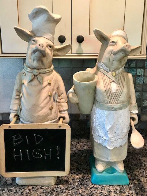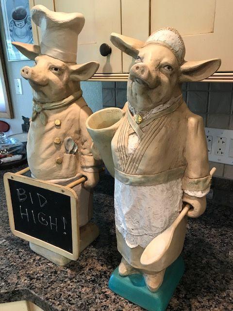 Two Ceramic Pig Chefs With Chalk Board. Local pick up only in Auburn, CA