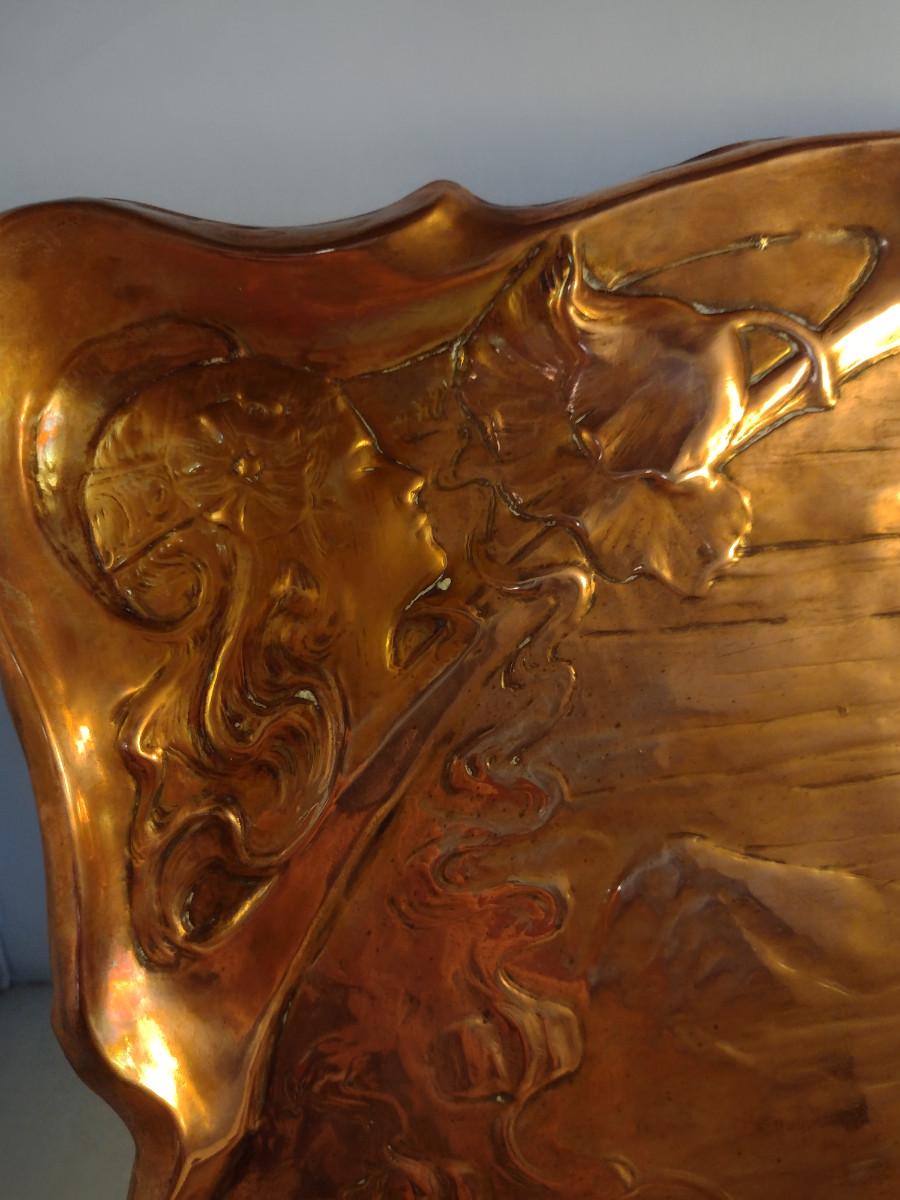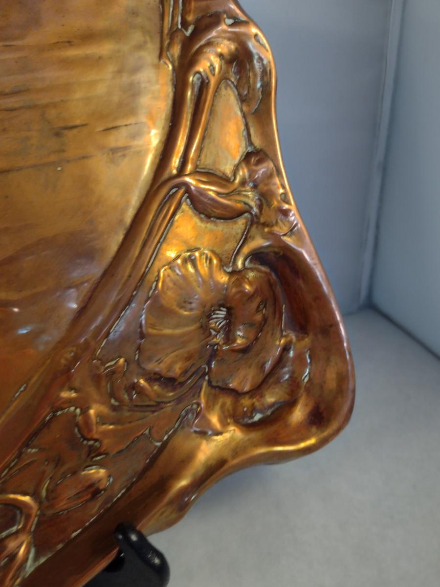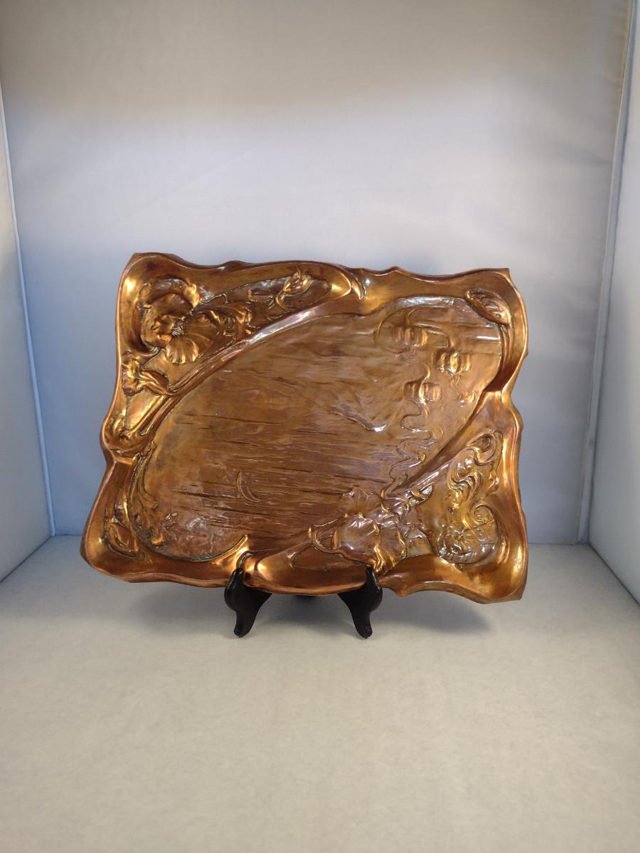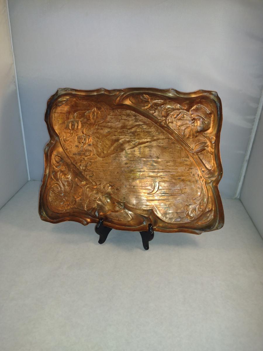 Copper Tray with Young Girl and Floral Raised Designs