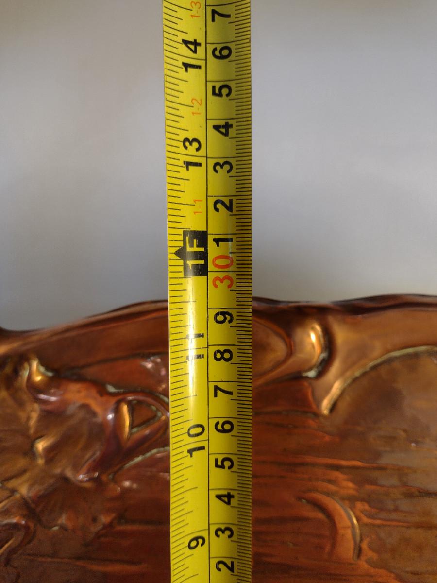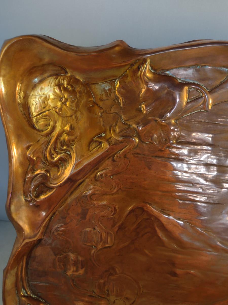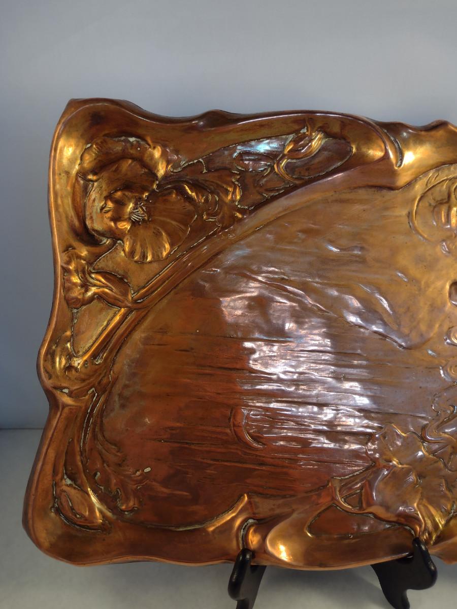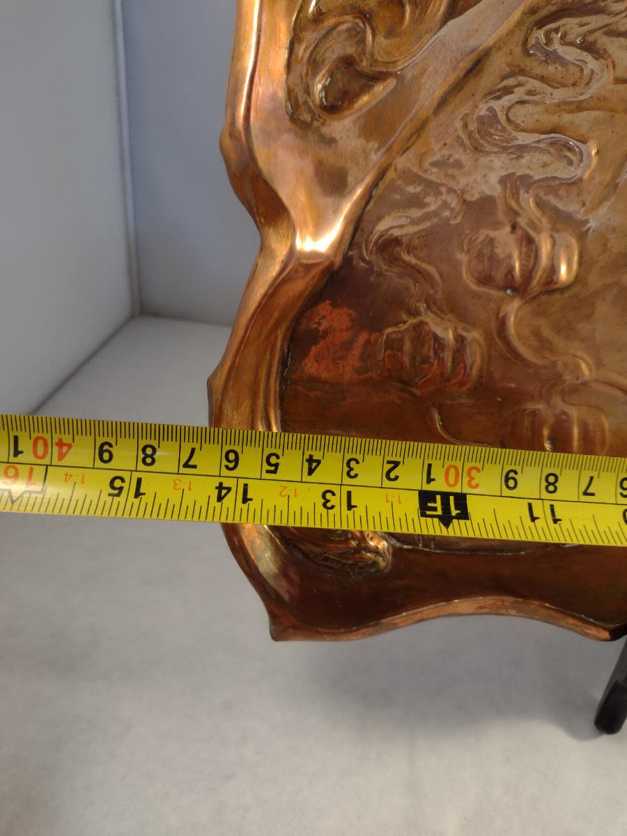 Copper Tray with Young Girl and Floral Raised Designs