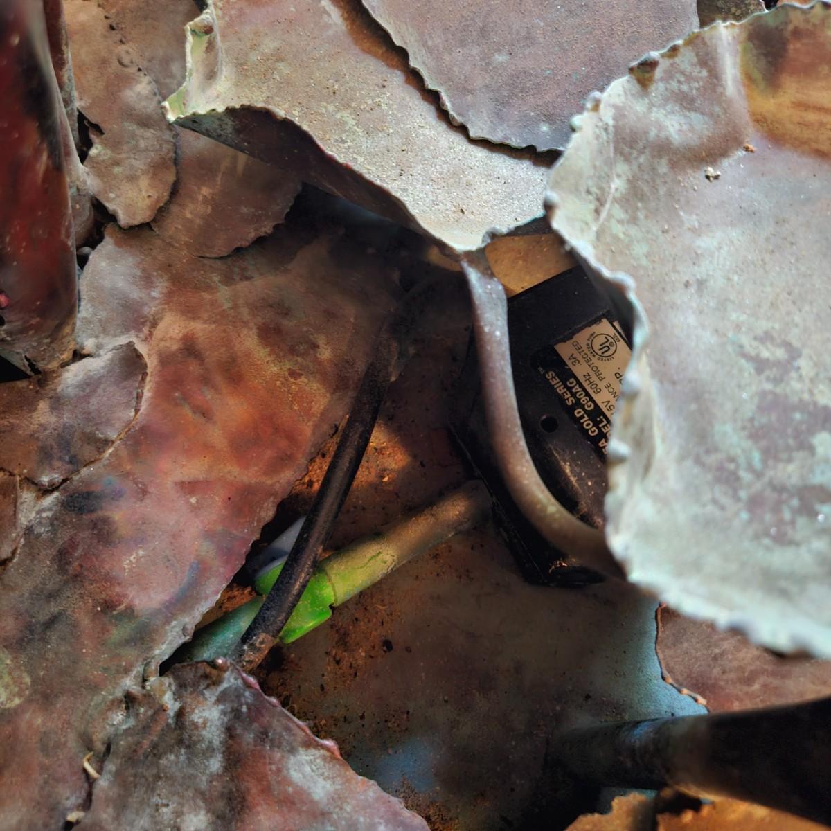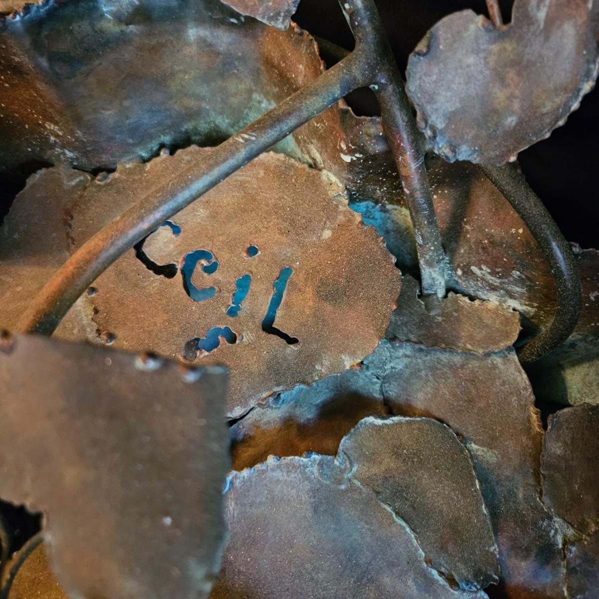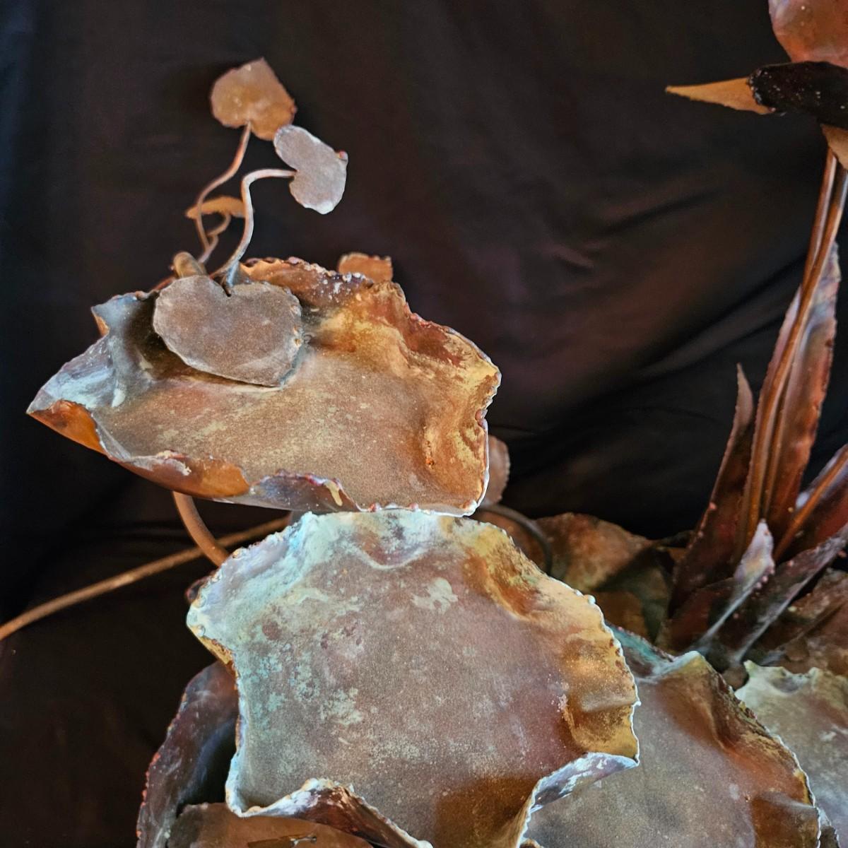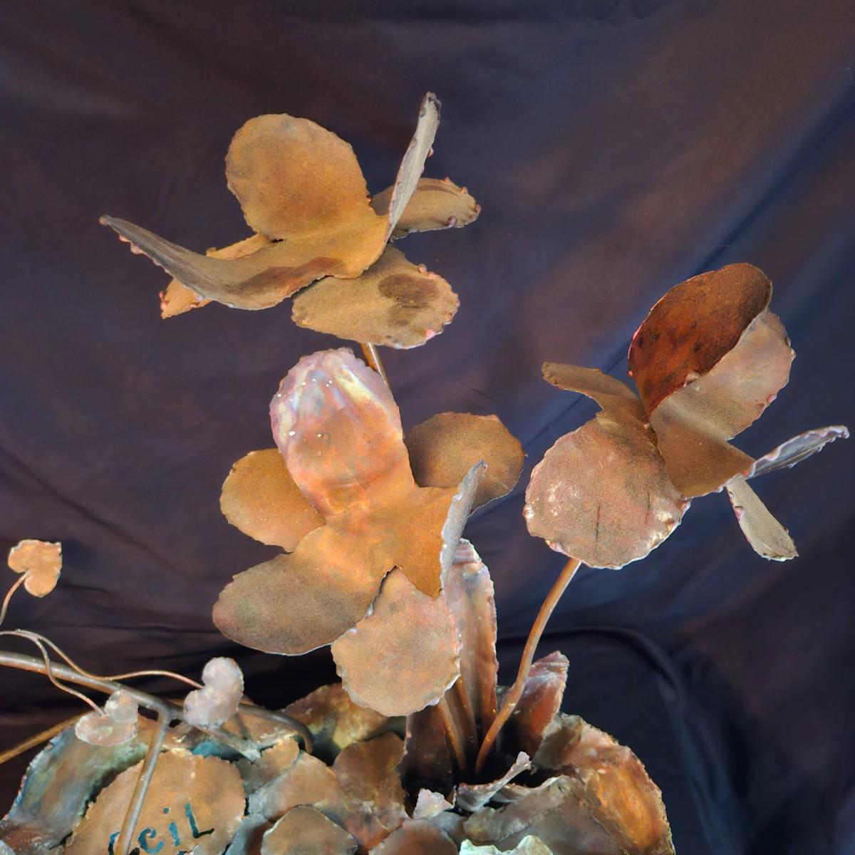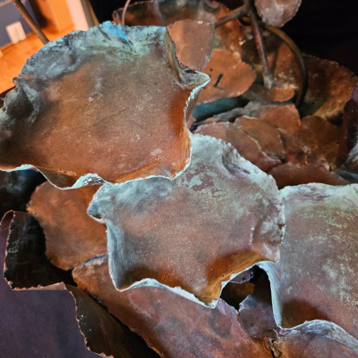 A copper water fountain that appears to be hand made with 'Ceil' cut into it. We were told the fountain appears to be made by Ceil Whitebrook, a former member of the Southern Highlands Craft Guild. It measures approximately 23" x 17" x 26"H. The pump powered on when plugged in. Shipping available.