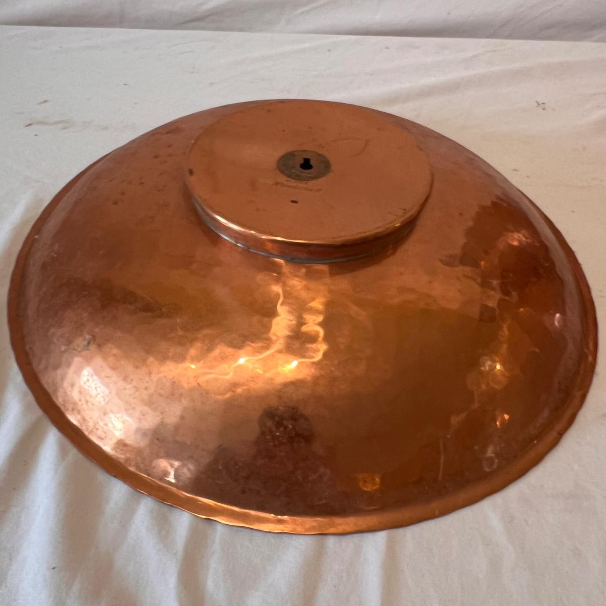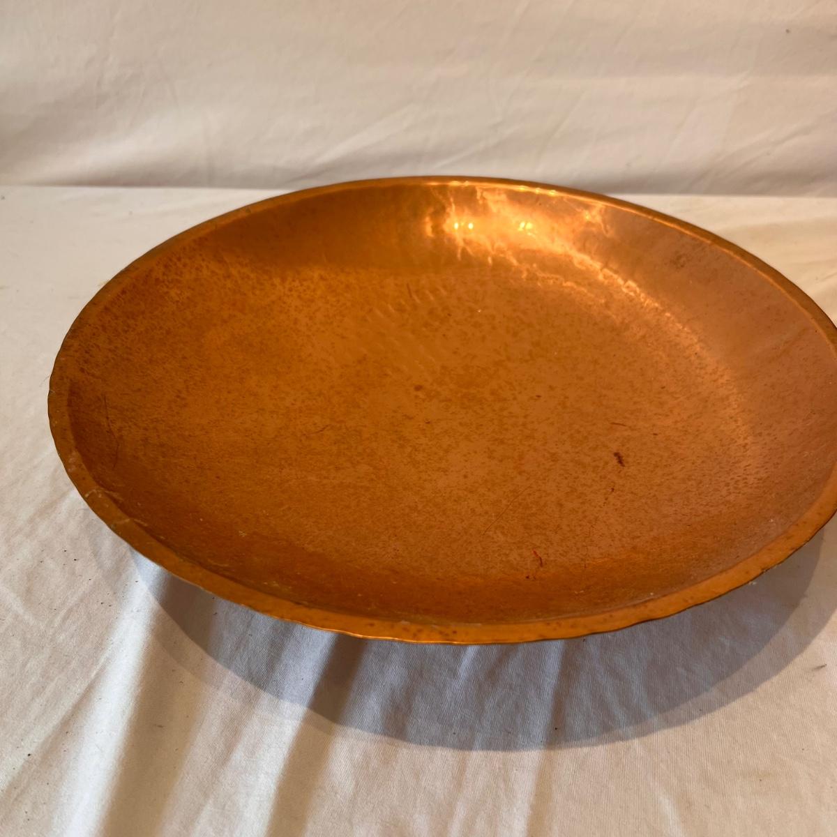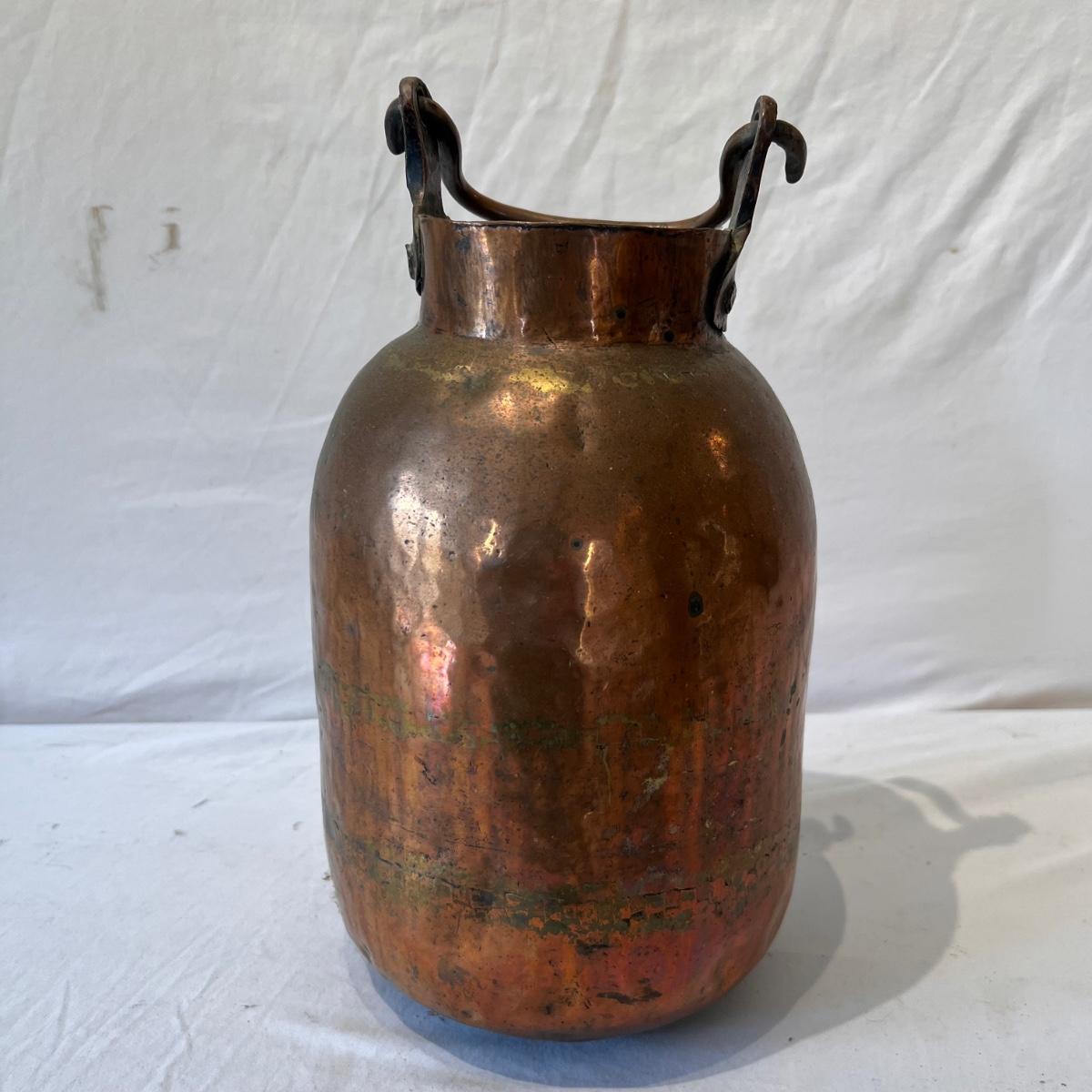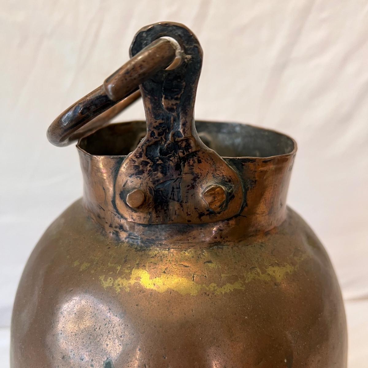 Four copper items including a large handled jug and a smaller water jug plus a shallow bowl and a lidded container.