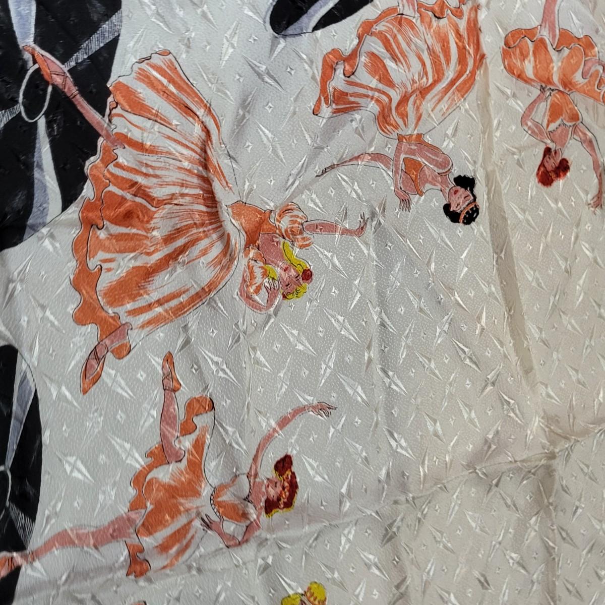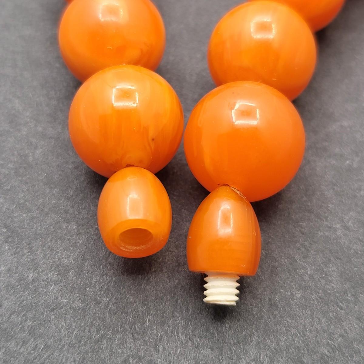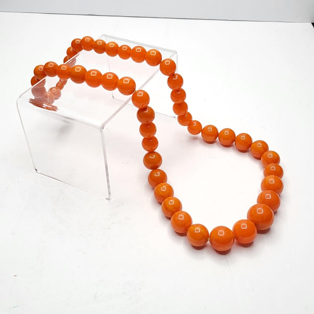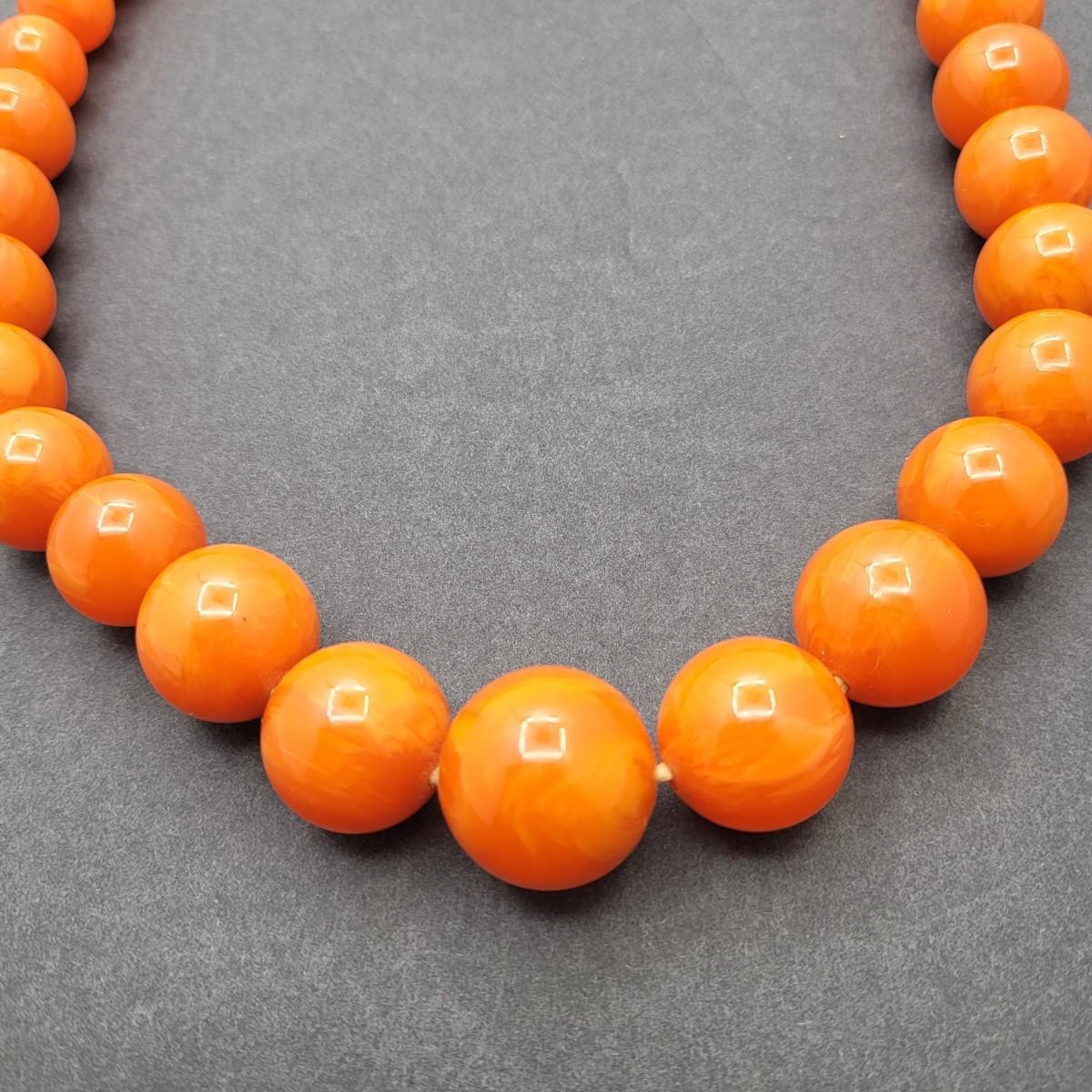 Coral colored bakelite? Graduated beaded necklace with twist clasp, 30". Dainty, real angel skin coral tulip choker style necklace with barrel twist clasp, 16". Vintage silk ballerina scarf, 31", made in Japan.
