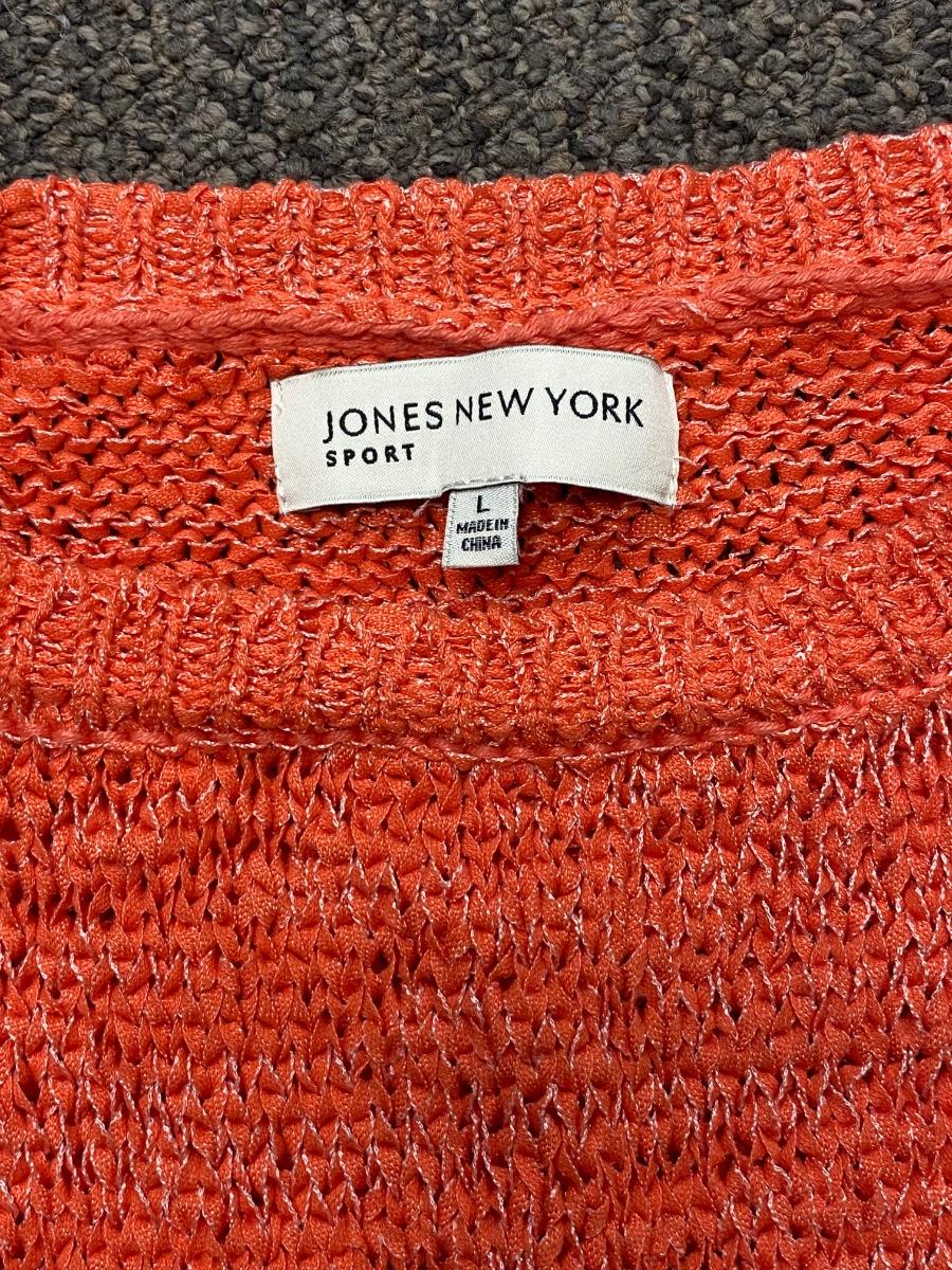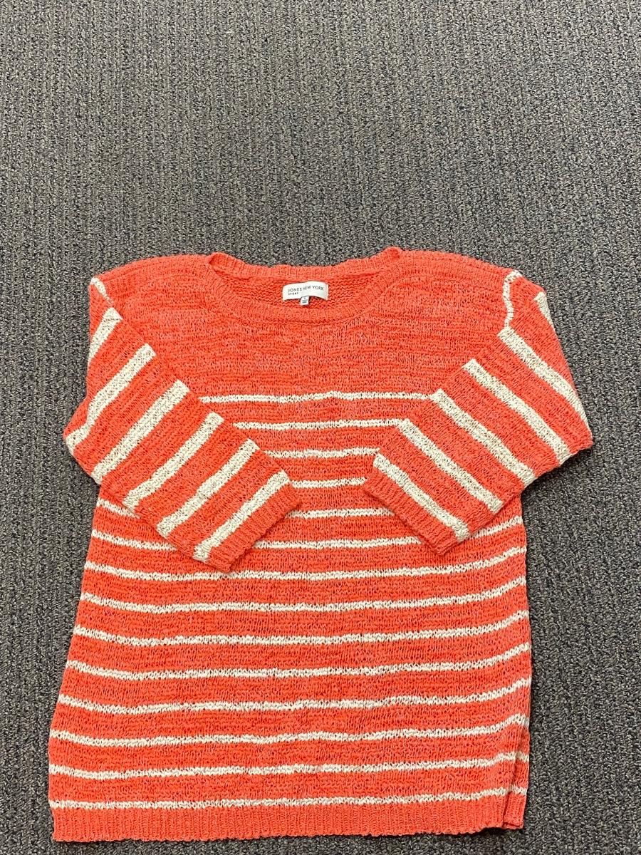 Coral & White Striped Jones New York Sport 3/4 Sleeve Sweater Blouse Top. In good previously owned condition. No spots noticed. Size large.