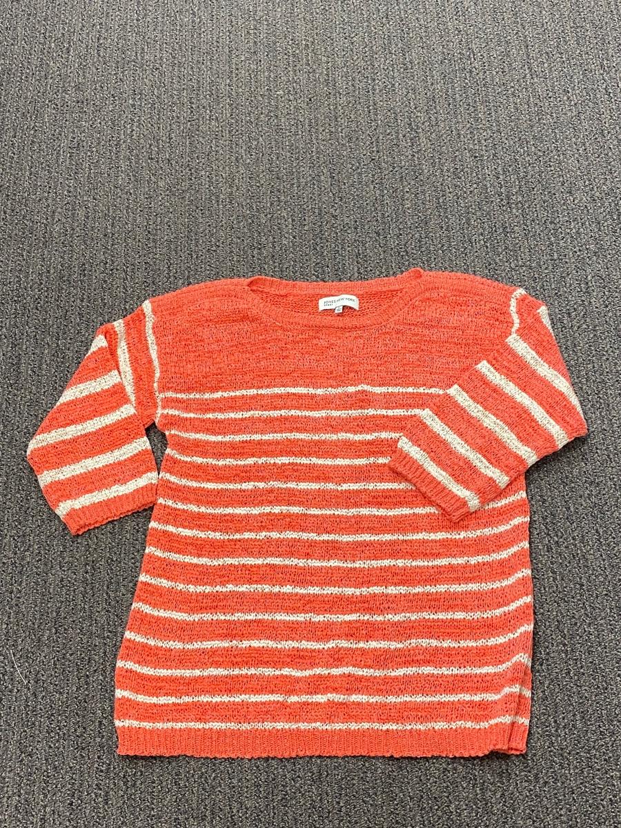 Coral & White Striped Jones New York Sport 3/4 Sleeve Sweater Blouse Top