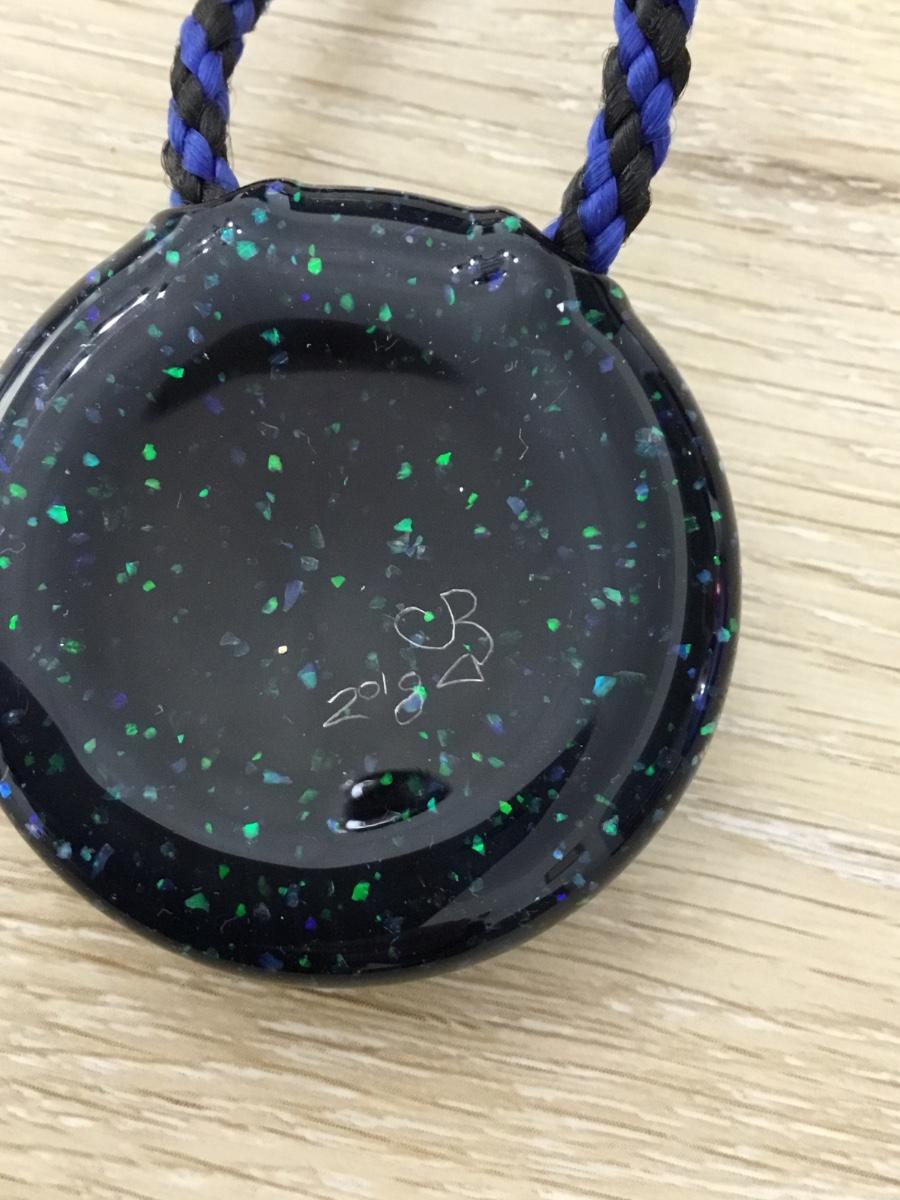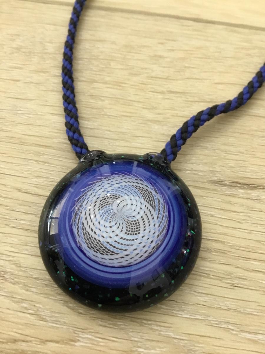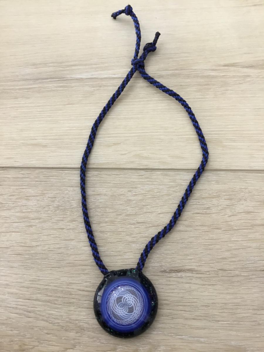 Corded blue necklace with glass pendant CB marked