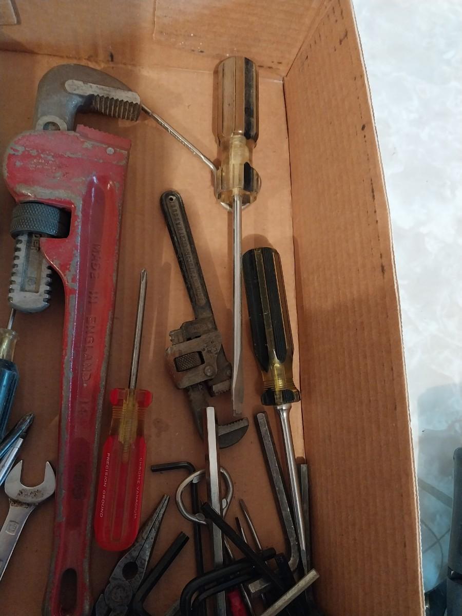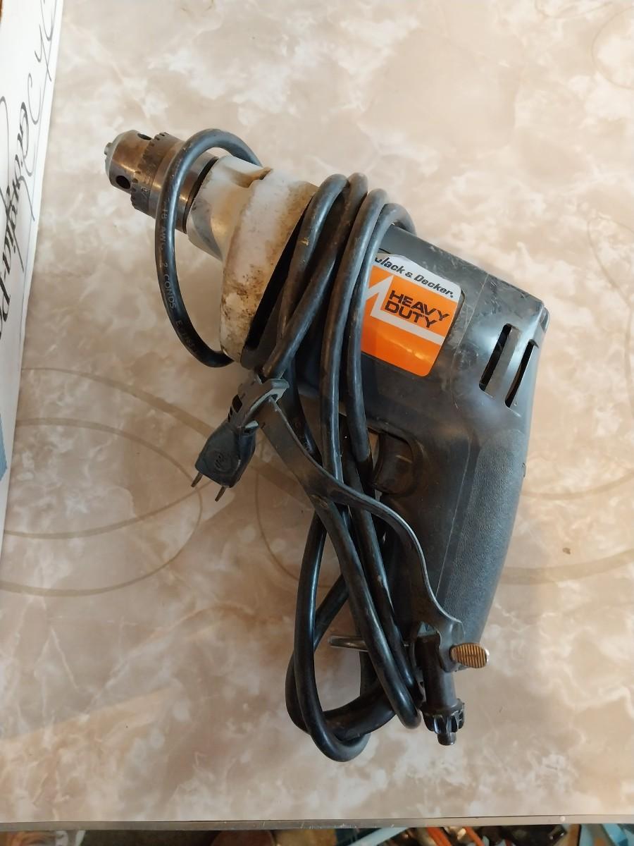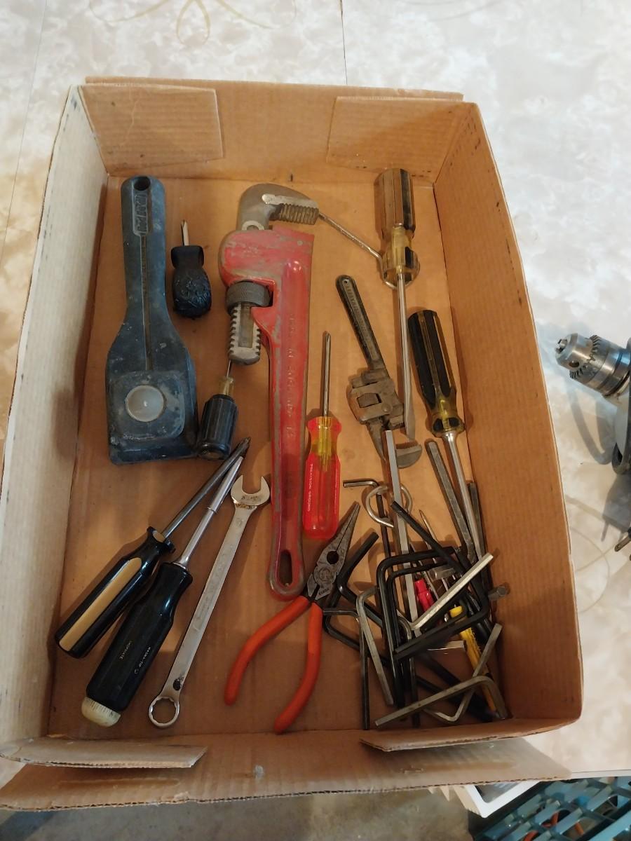 CORDED DRILL AND AN ASSORTMENT OF HAND TOOLS