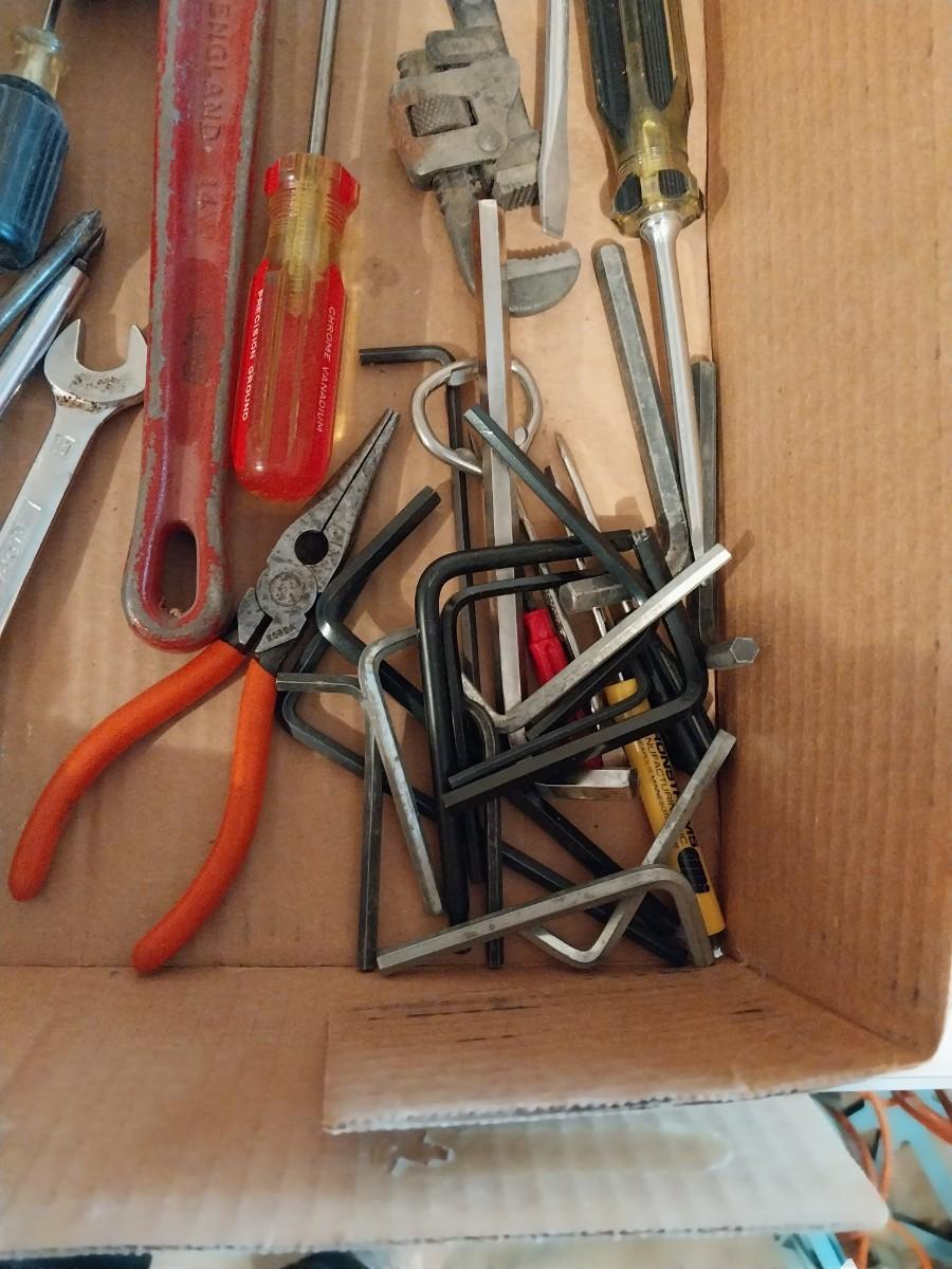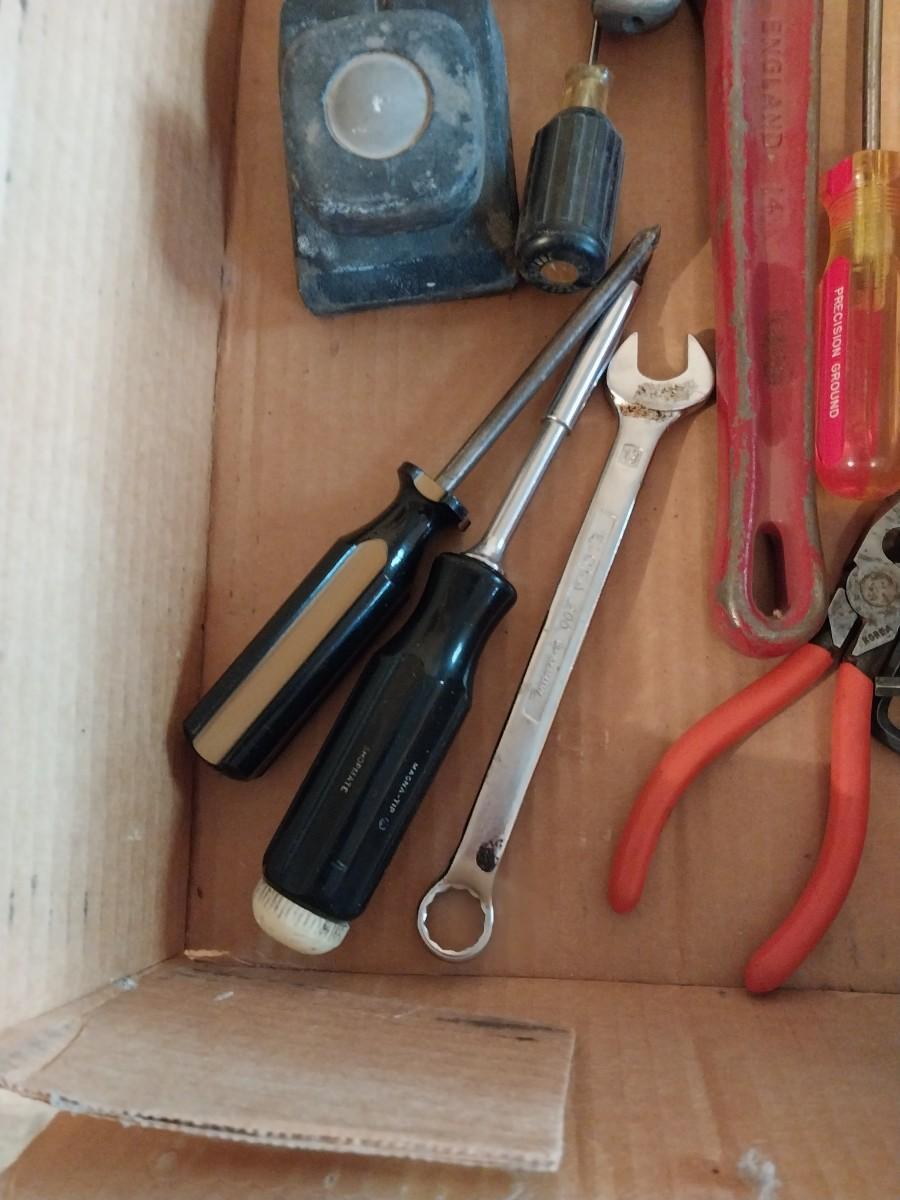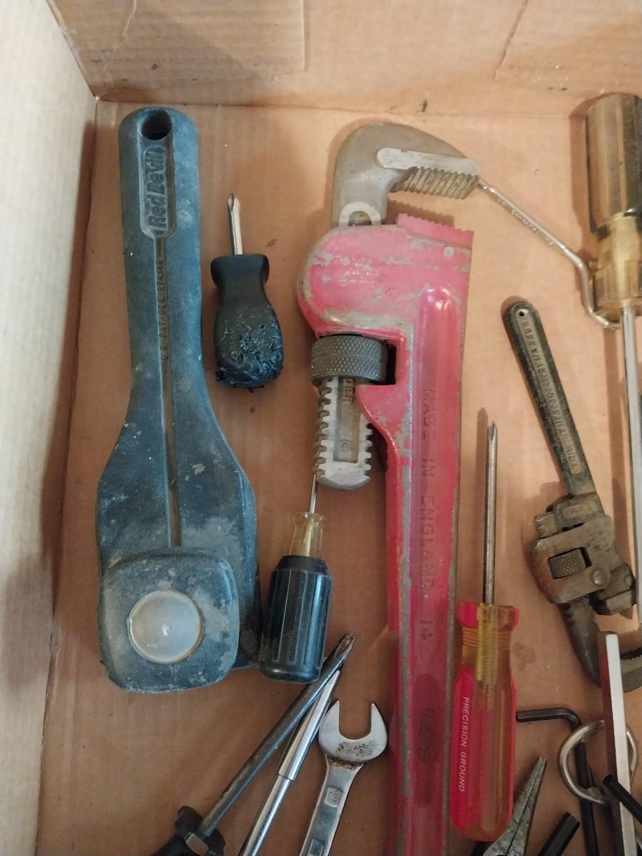 CORDED DRILL AND AN ASSORTMENT OF HAND TOOLS