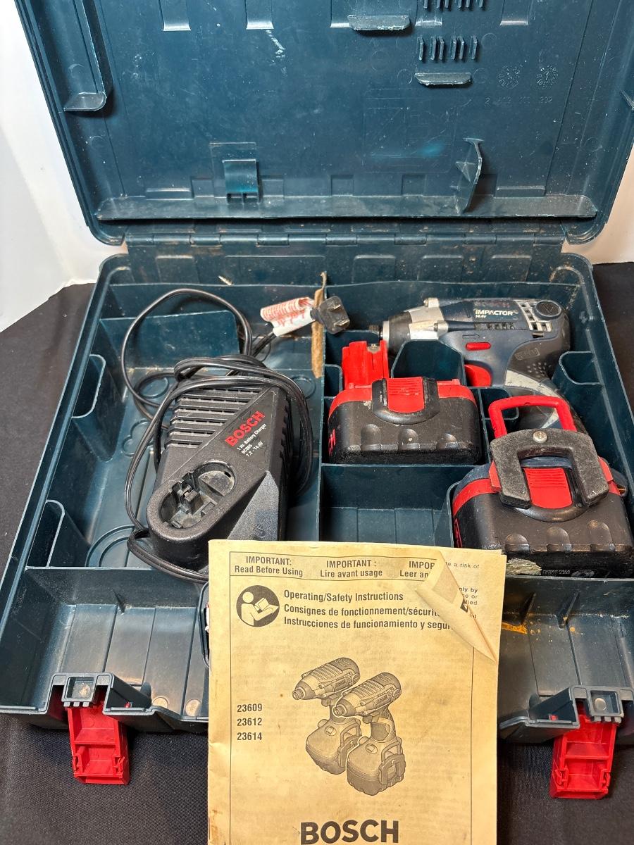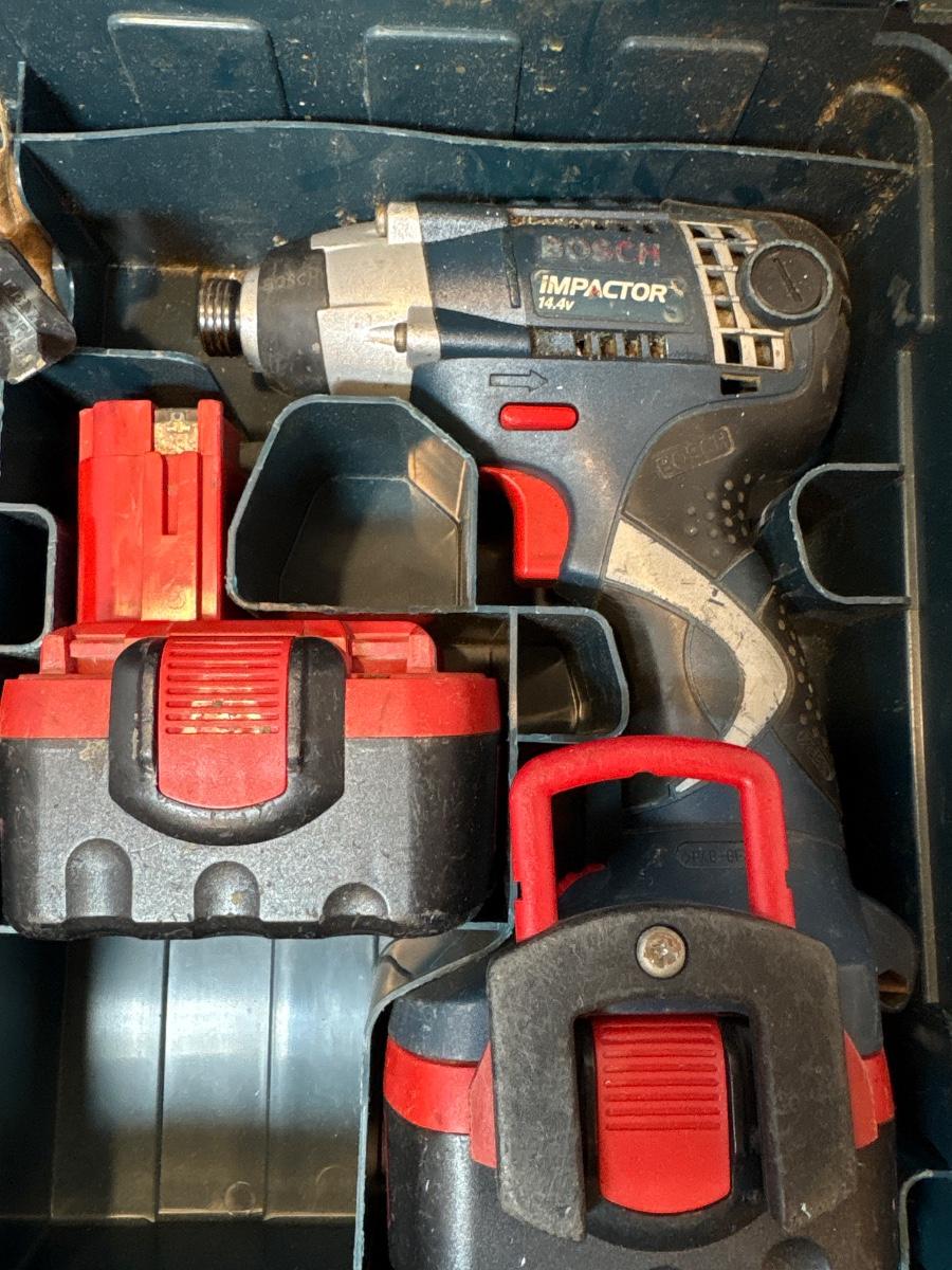 Cordless Bosch impact driver with Case, batteries, and charger