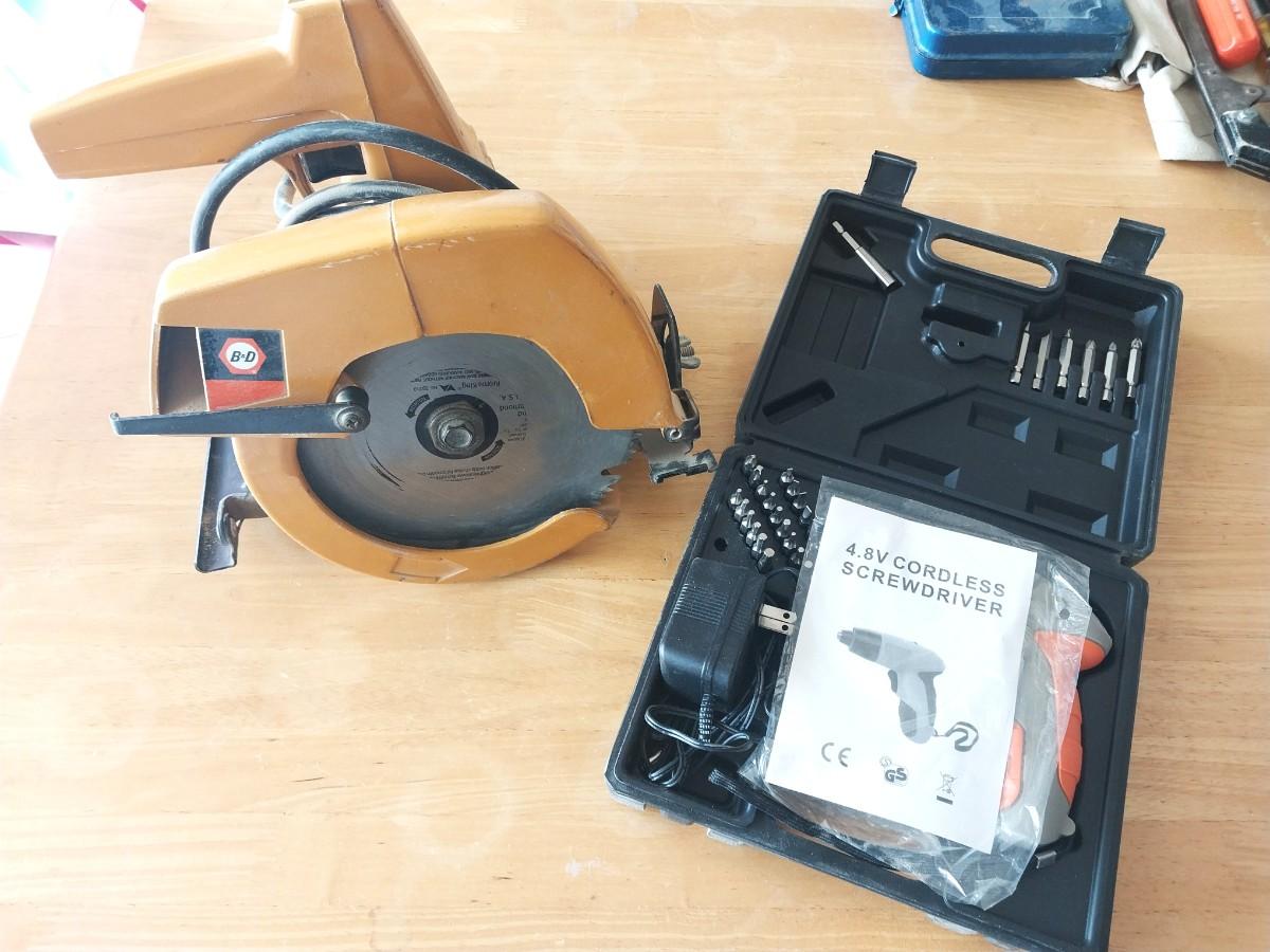 CORDLESS SCREWDRIVER IN CARRY CASEAND BLACK & DECKER 7 1/4" CIRCULAR SAW