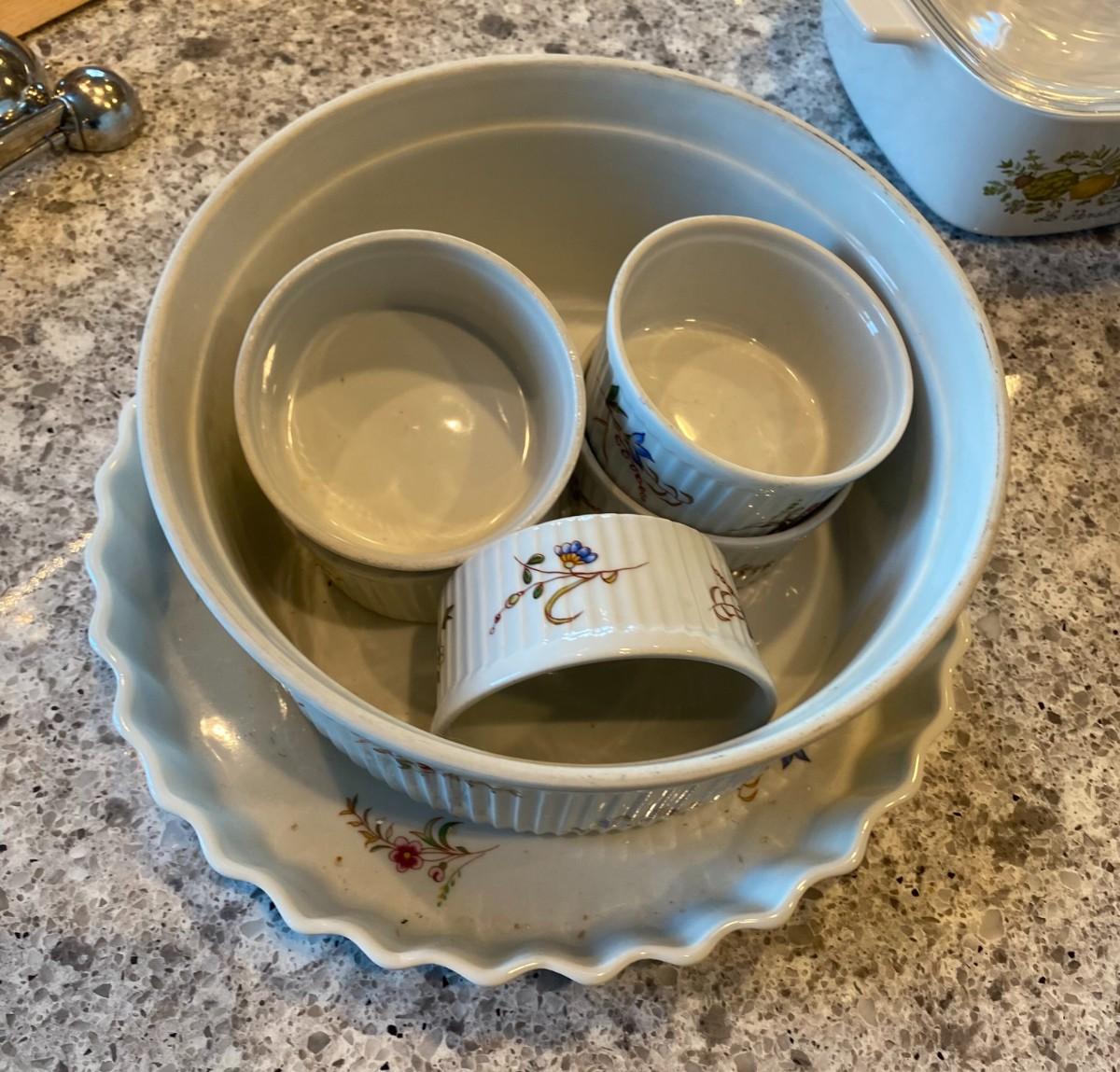 Cordon Blue millefleur Souffle dish, Ramiken, & Quiche Dish.