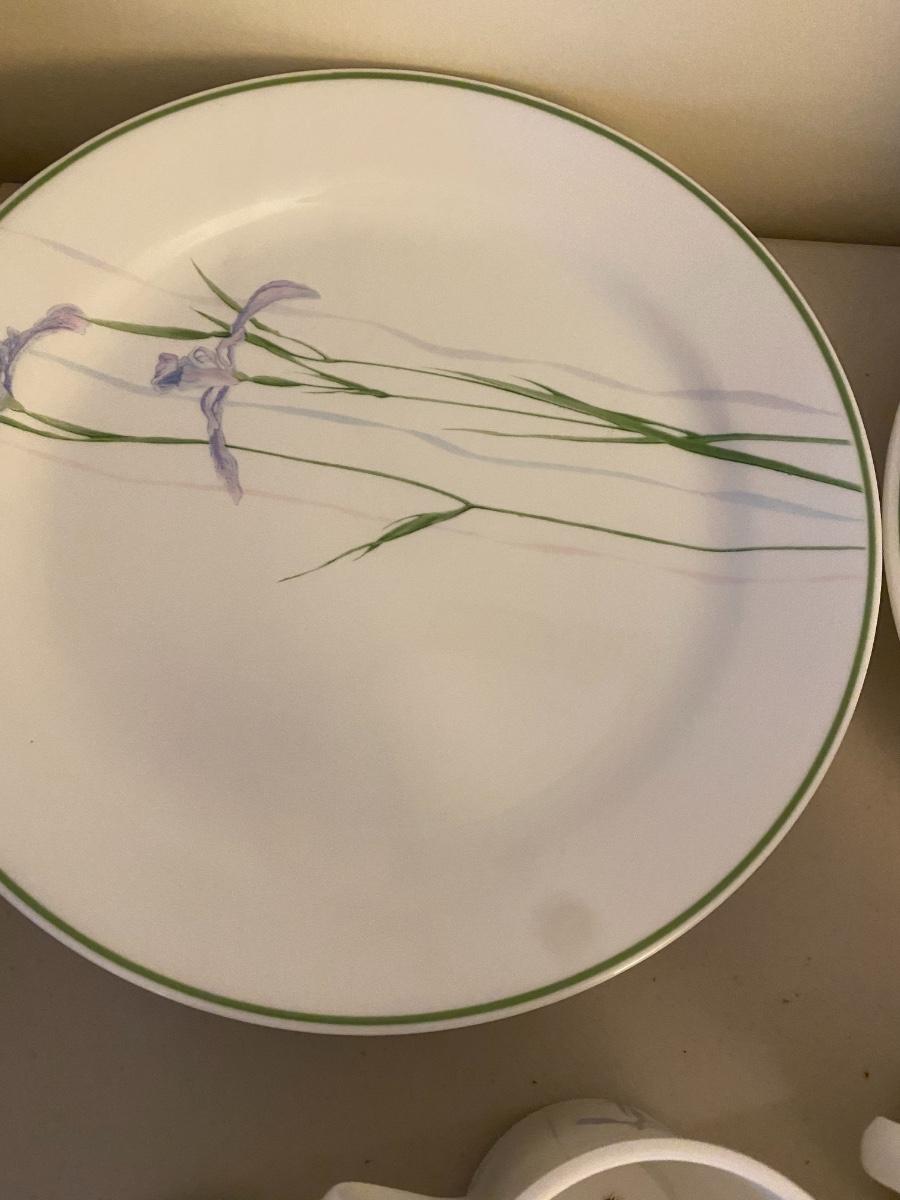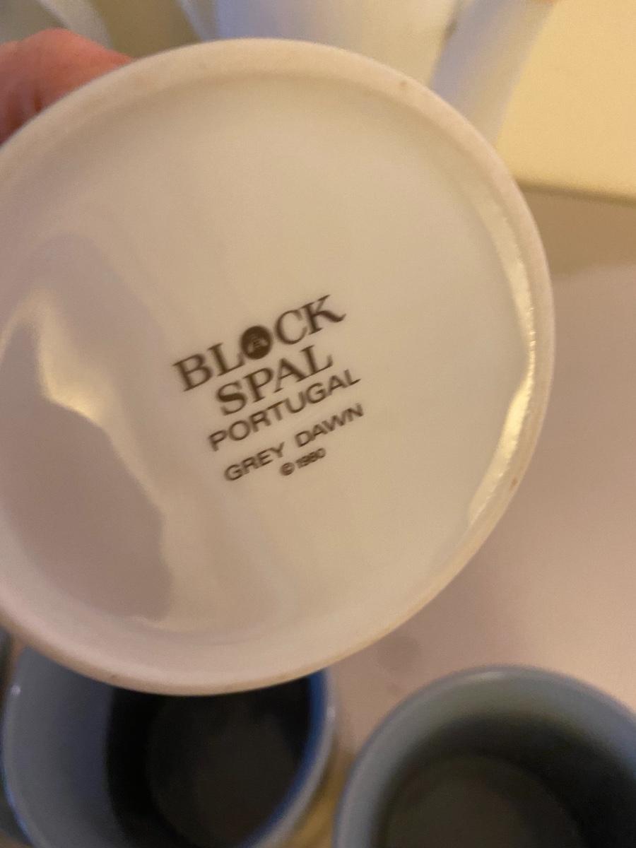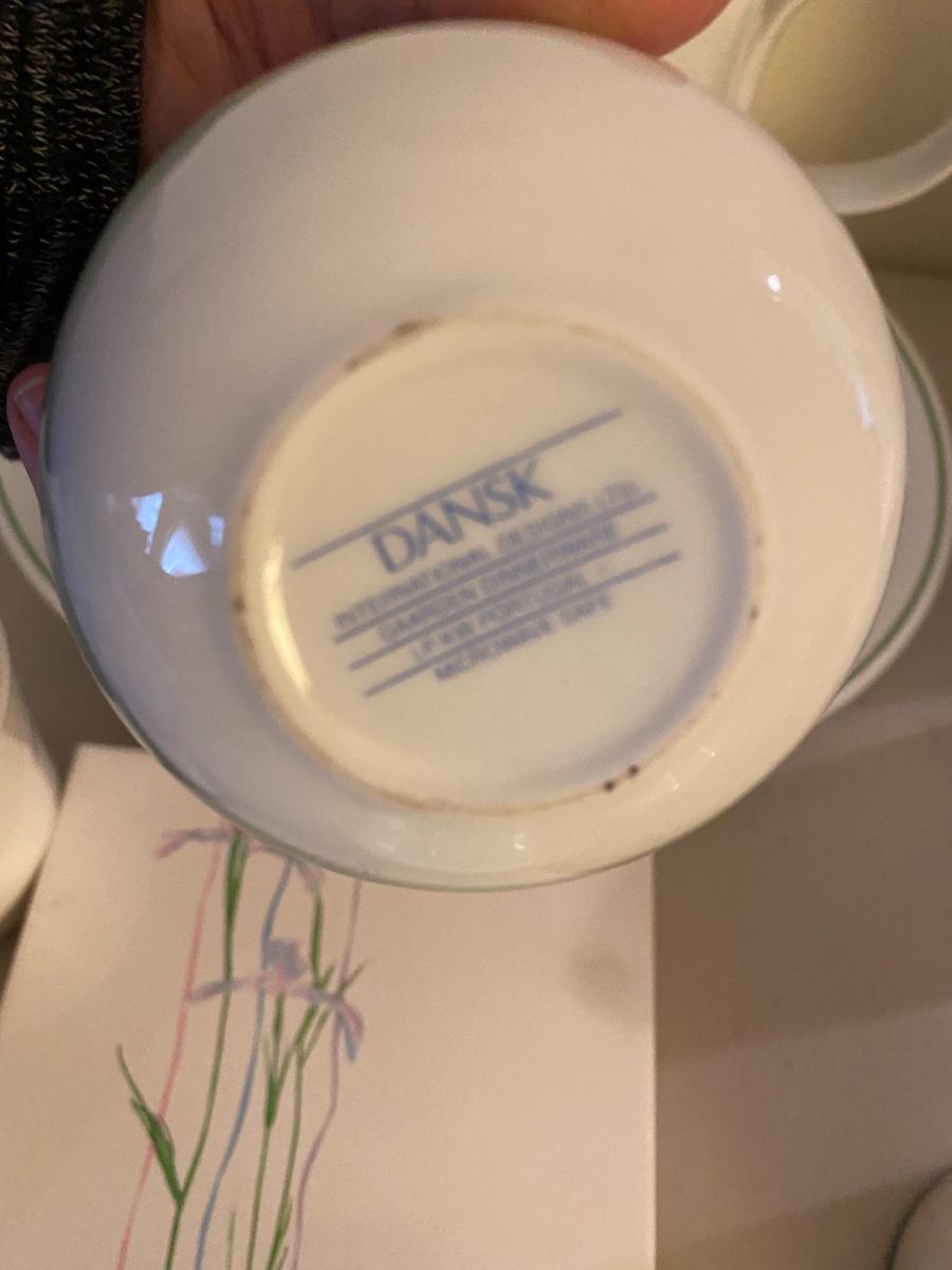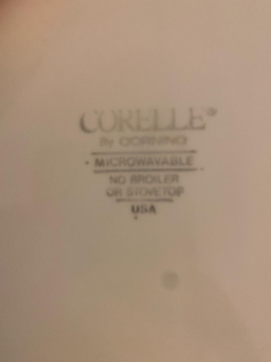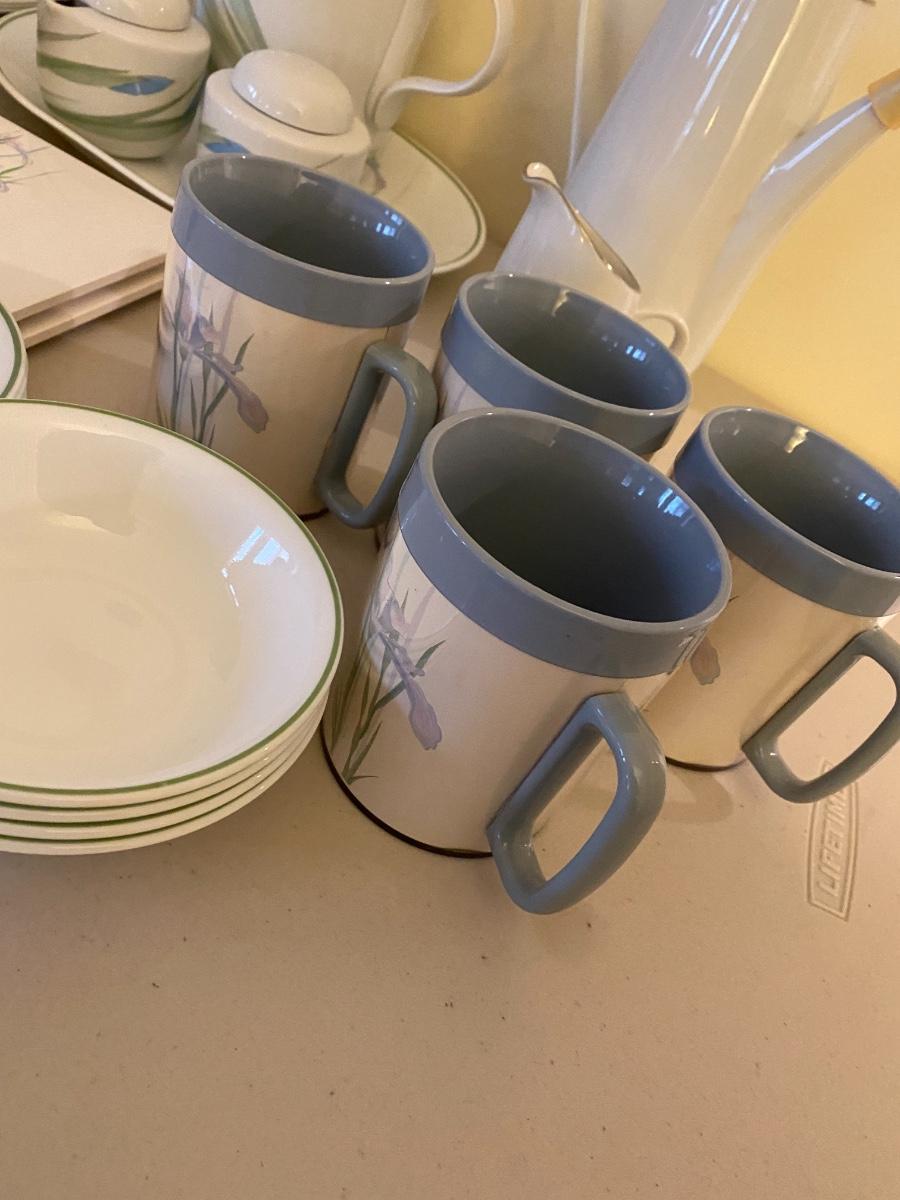 Also includes DANSK and Block Spal. Comprises eight dinner plates, four bowls, three bread and butter dishes, four berry bowls, eight coffee cups and saucers, one oval tray and two trivets all by Corelle. Also includes a DANSK coffee pot with creamer and sugar, a Block Spal coffee pot and milk jug, and four Royal Crest plastic coffee cups.