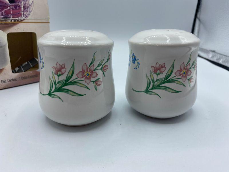 Corelle Coordinates "My Garden" Shaker Set. In original box. Box has damage but the shakers look unused, just a little dusty from storage.