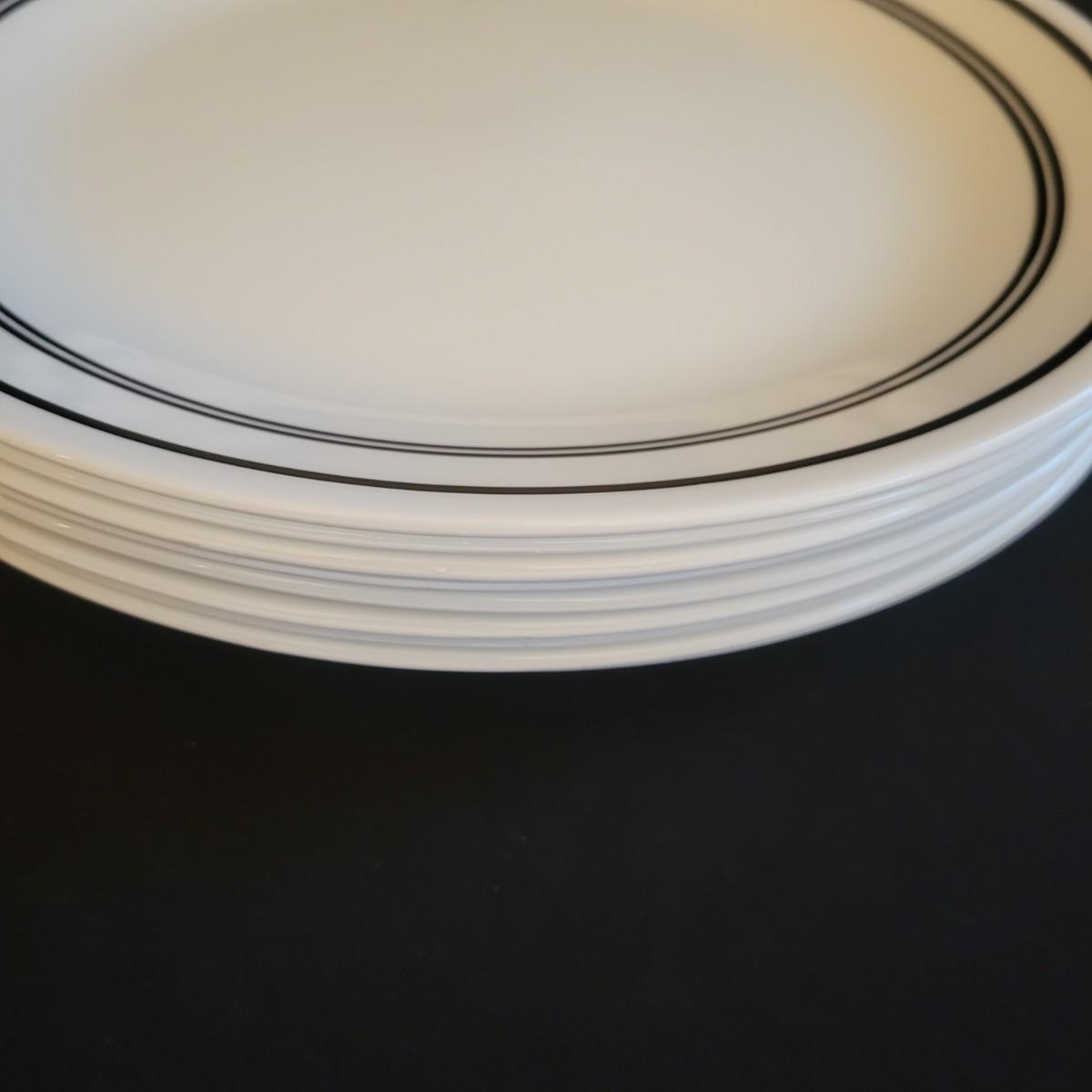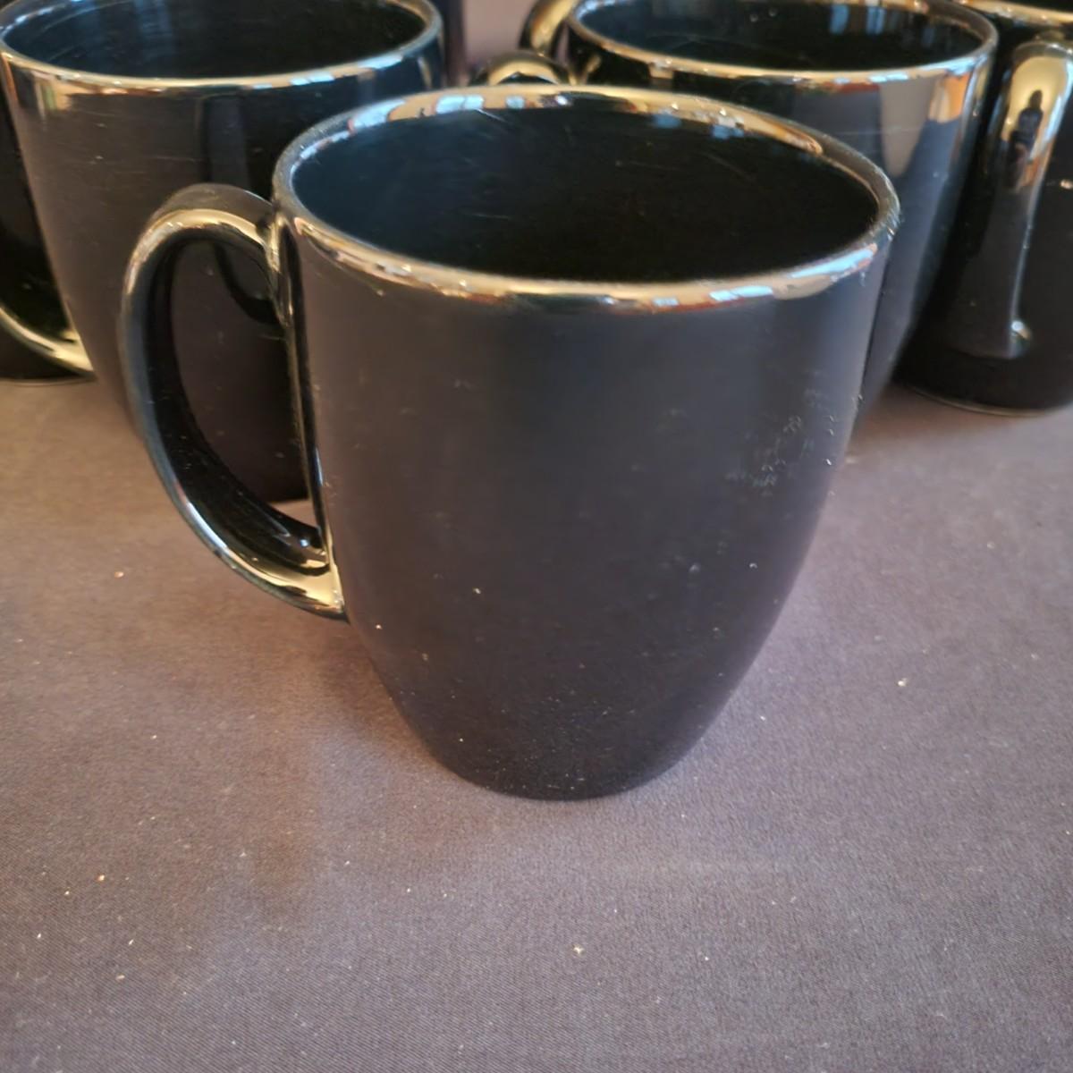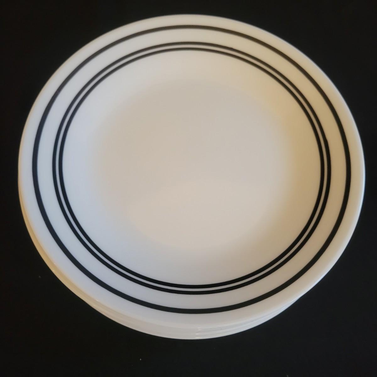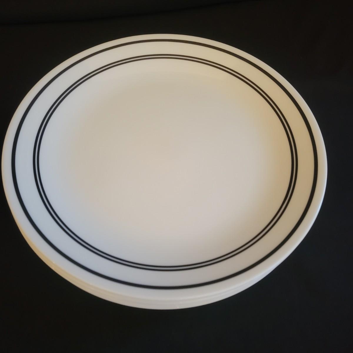 A collection of Corelle dinnerware and mugs with no chips. Included is nine dinner plates and salad plates, six bowls and seven mugs. Lot also includes a large salad bowl that measures approximately 9.5"D x 4"H. Local pickup only