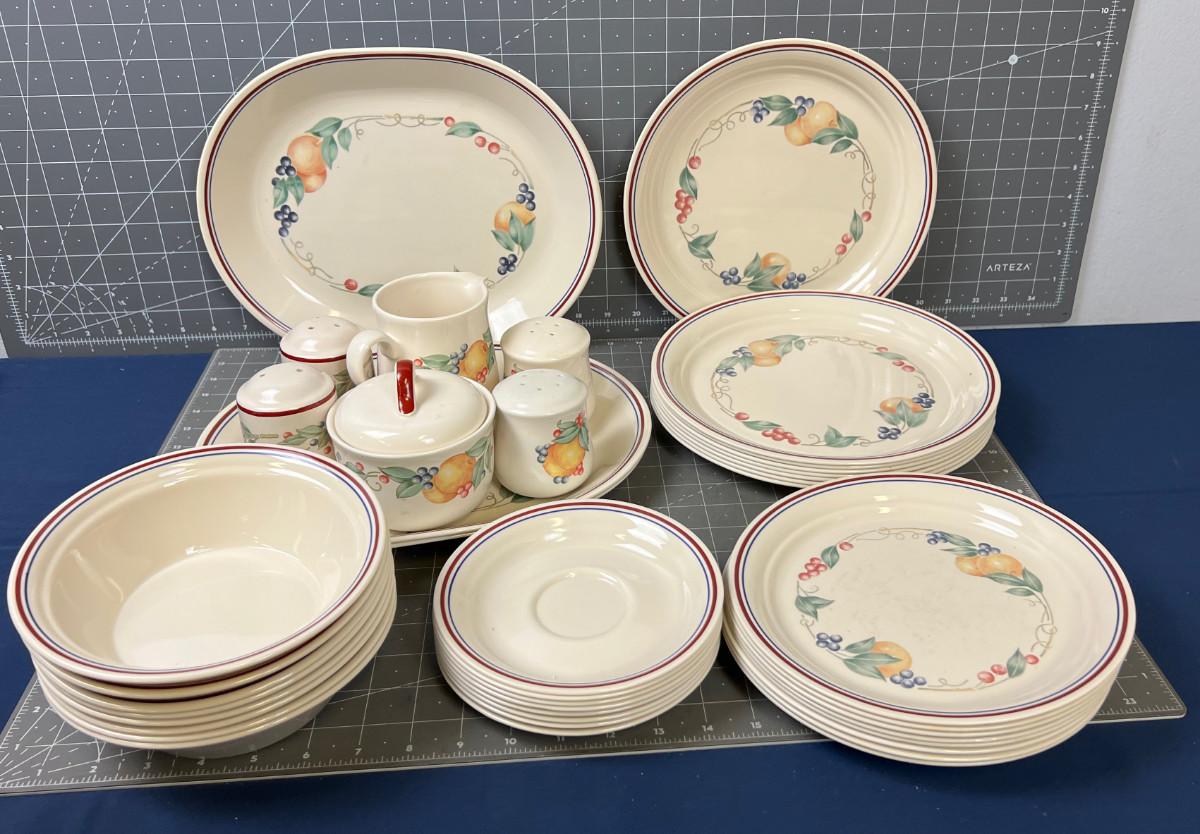 Used Good Condition Serving Bowls, Dinner Plates Salad Plate and Saucers, NO CUPS, 2 -S&P, Cream and Sugar. 3 Platters