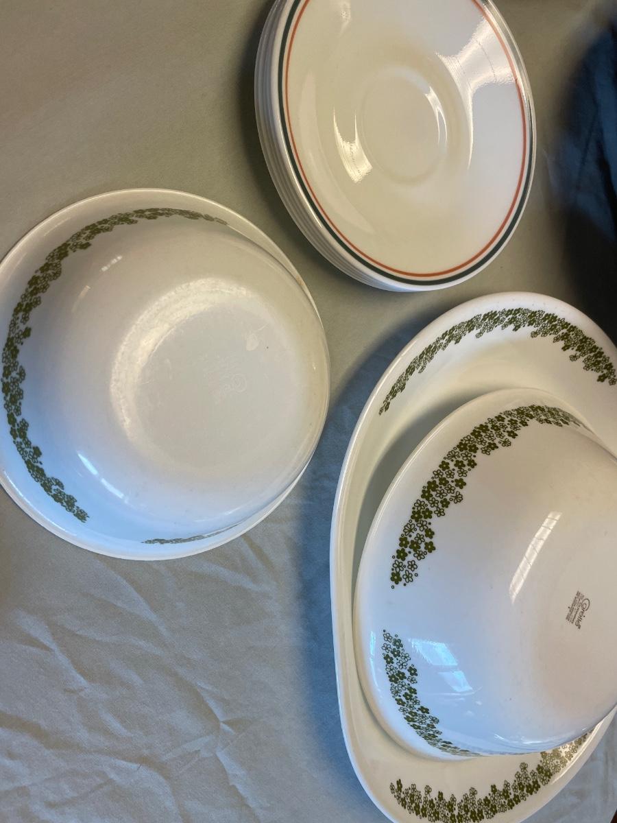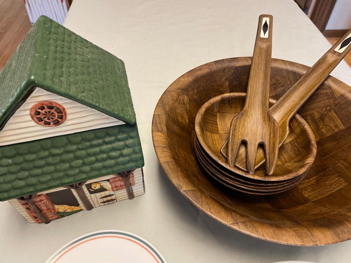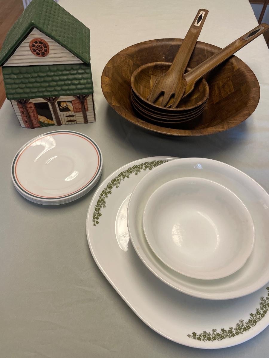 Corelle servingware, horse stable cookie jar by block and wood,weave bowls